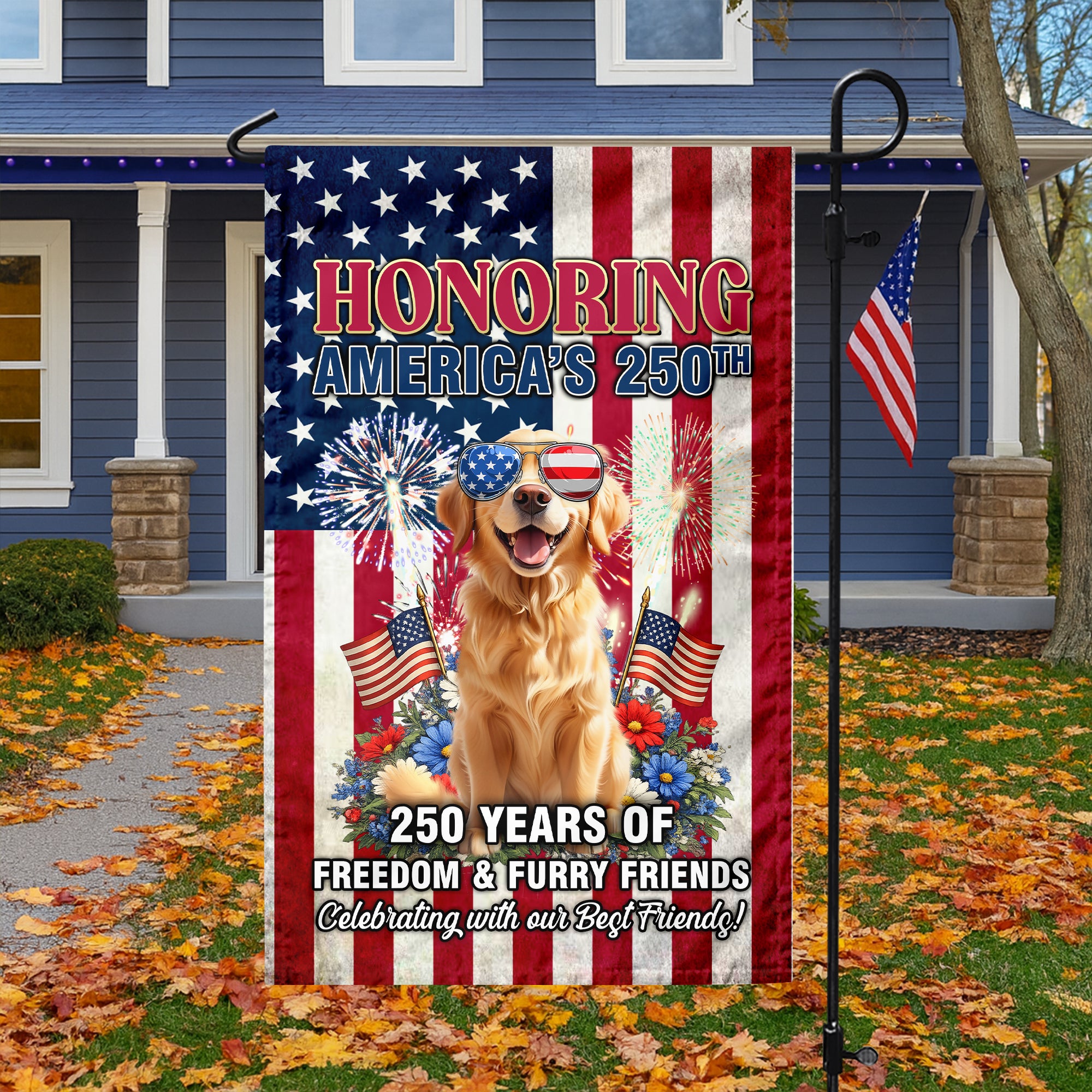 Personalized 250 Years Of Freedom & Furry Friends Garden Flag, Gift For Dog Lovers TH10 898831