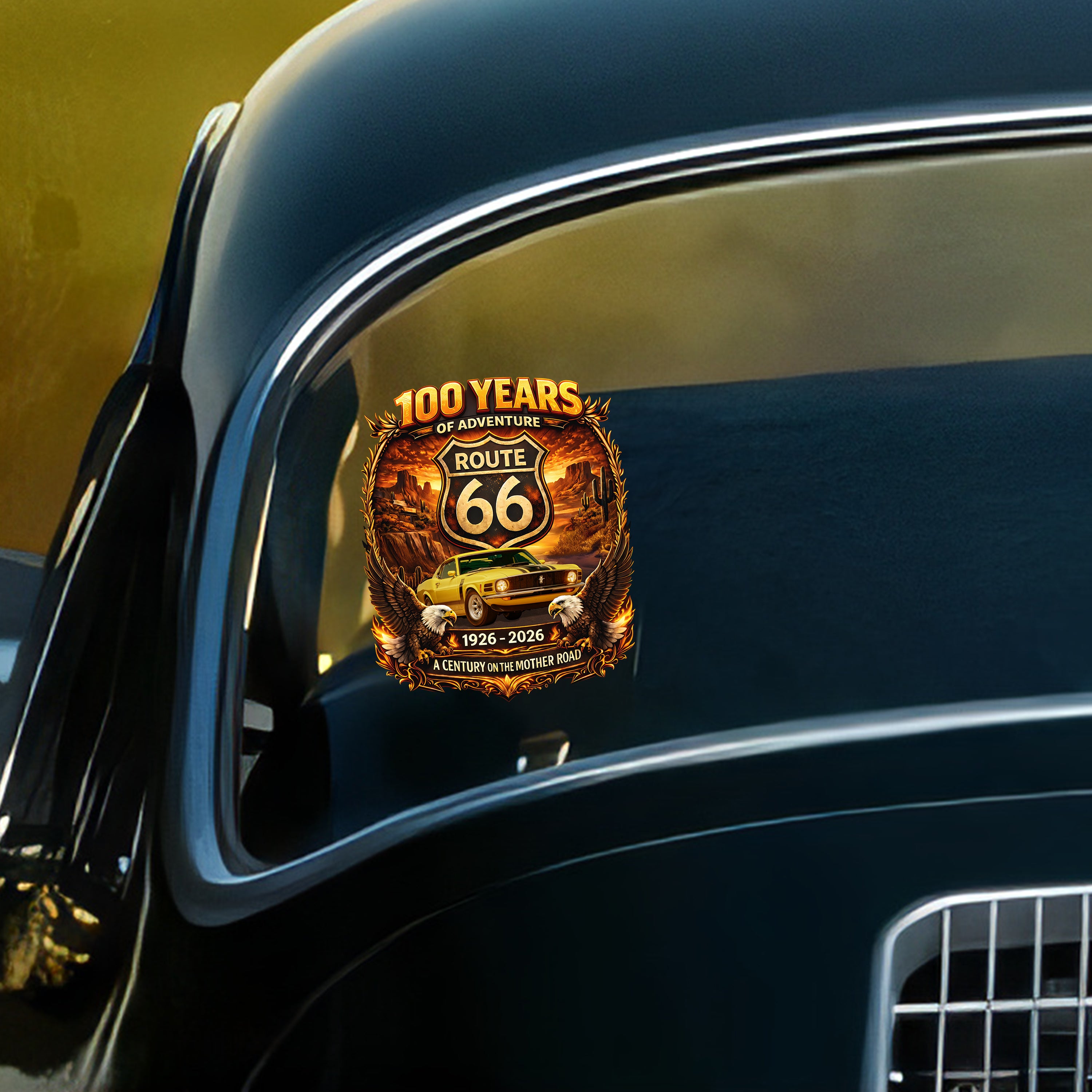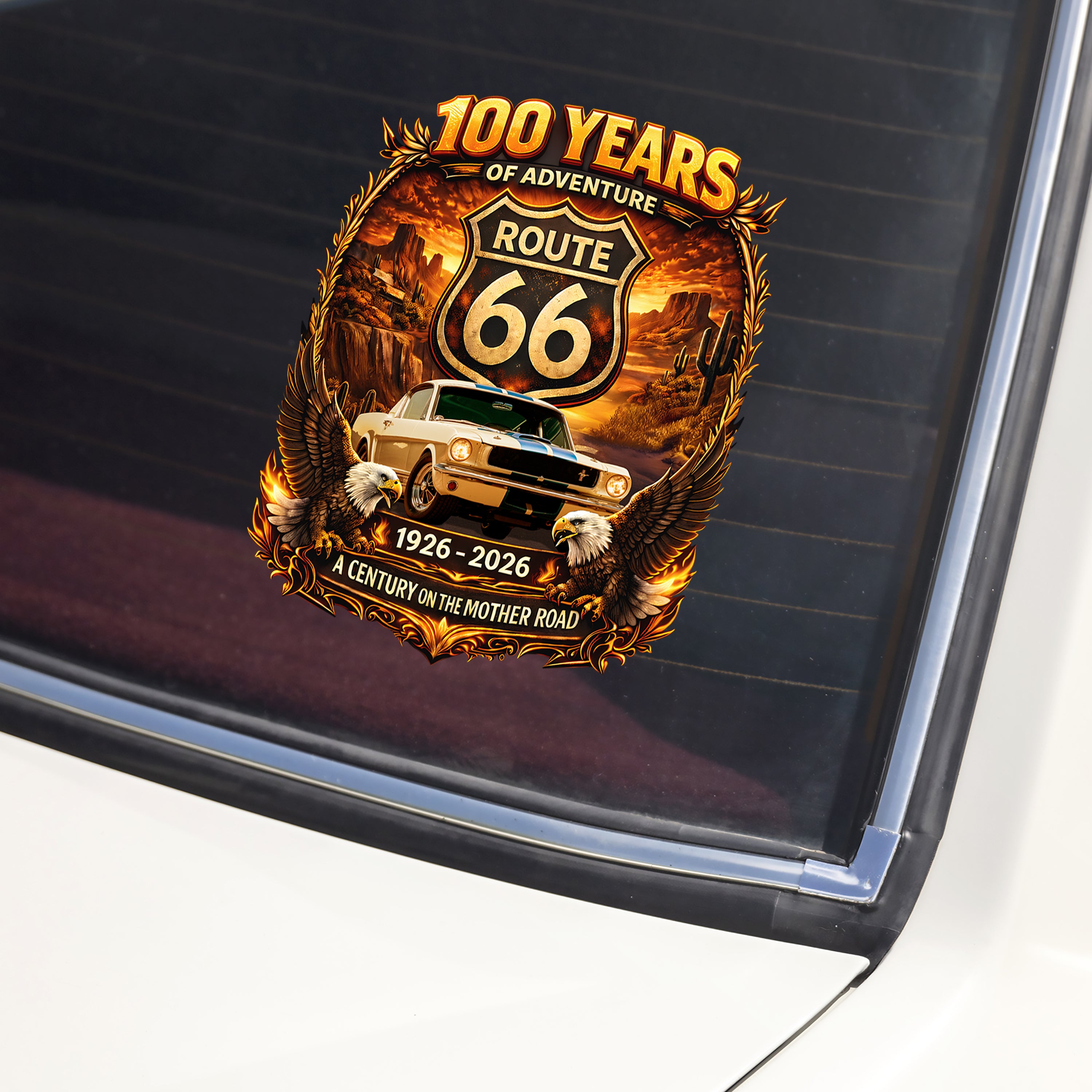 Transform your vehicle into a personalized tribute with this custom photo car window decal. Perfect for Route 66 enthusiasts and adventure seekers, this premium sticker lets you celebrate 100 years of iconic American road culture while showcasing your own memories.