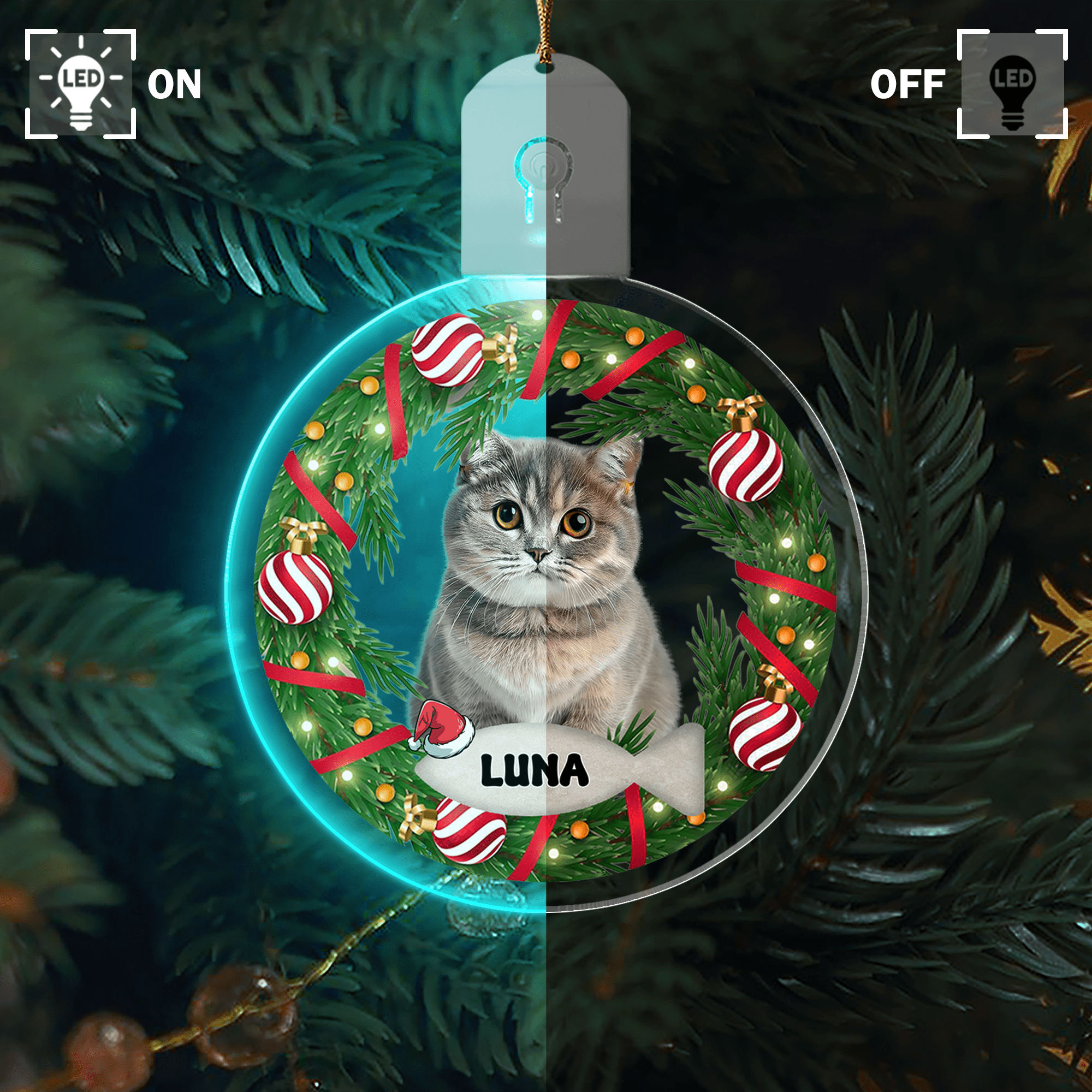 Custom Photo Cat Circle Led Acrylic Ornament For Christmas HA75 891648