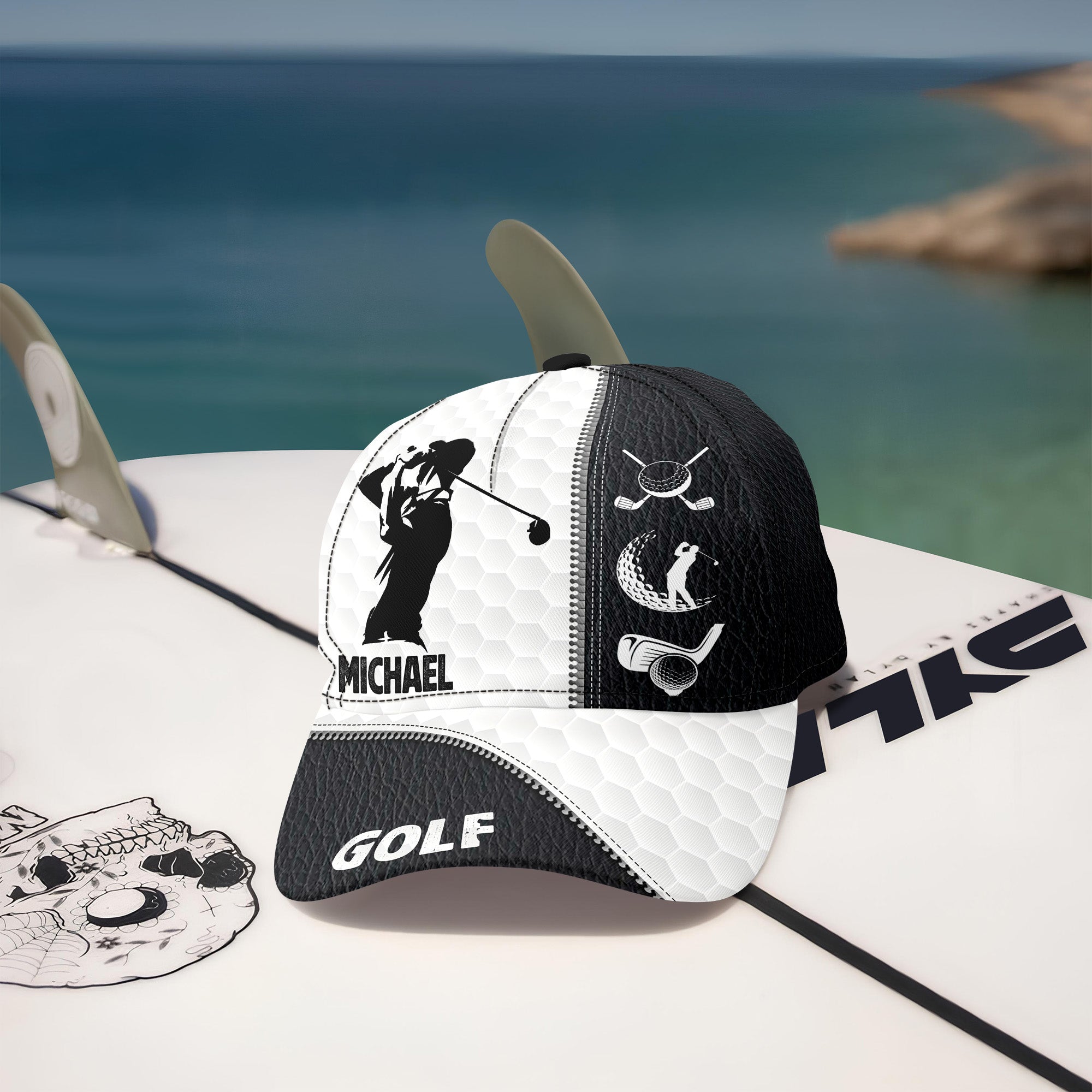 Elevate your golf game with this custom all-over-print cap designed exclusively for passionate golfers. Personalize it with your name or favorite phrase to showcase your unique style on and off the course. Premium fabric construction ensures comfort during long rounds, while the classic cap silhouette complements any golf outfit. Whether you're a seasoned player or weekend enthusiast, this personalized accessory makes the perfect gift for the golfer who has everything. Stand out at the clubhouse and make every round more memorable with a cap that's truly one-of-a-kind.