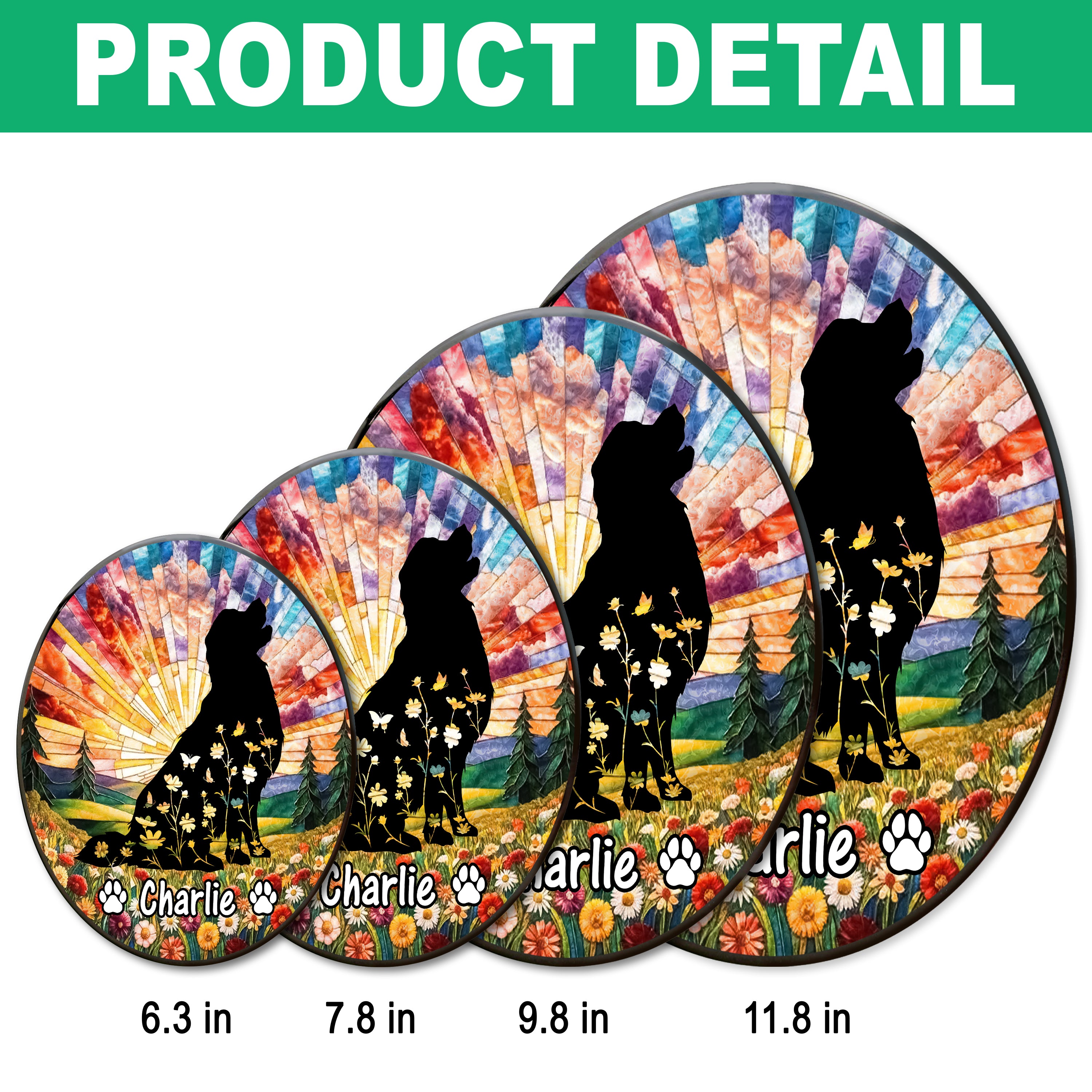 Celebrate the cherished memory of your beloved dog with this Custom Floral Dog Memorial stained glass suncatcher. Designed for dog lovers, it beautifully captures the spirit of your furry friend while adding a vibrant, heartfelt touch to any window. The colorful floral design filters sunlight to create a warm, comforting glow, making it a meaningful tribute that brightens your home every day.