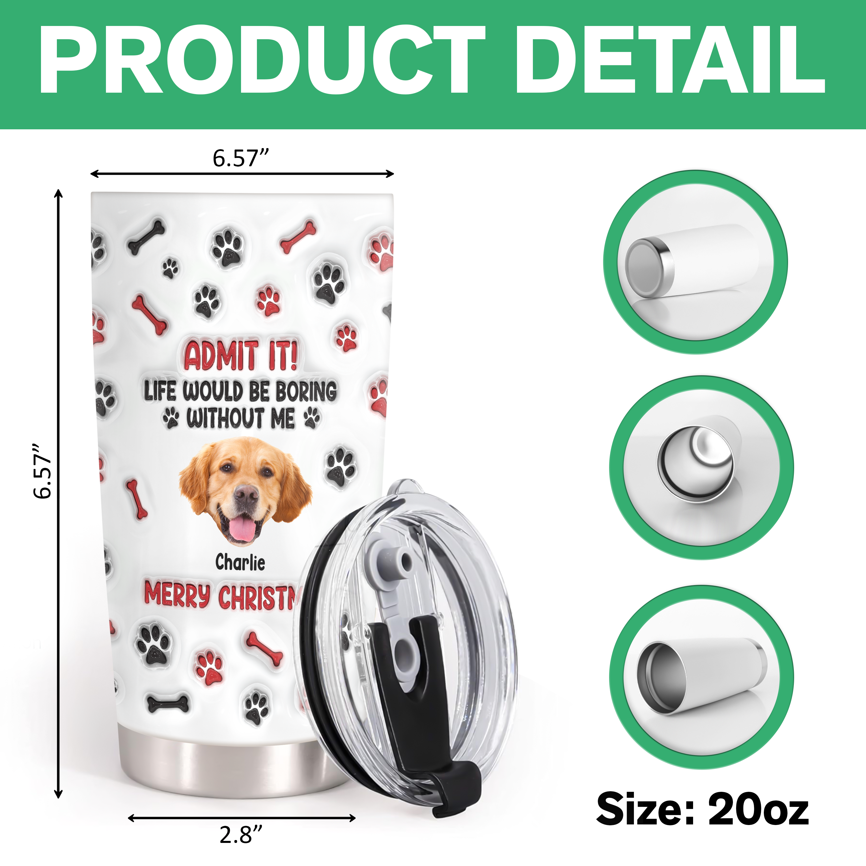 Celebrate your love for dogs with this Custom Photo Admit It Paw Personalized 3D Inflated Effect Tumbler. Featuring a unique 3D inflated design and customizable with your favorite pet photo, it’s the perfect way to keep your drinks stylishly cool while showcasing your furry friend. Ideal for dog lovers who want a personal touch in their daily routine. Durable and eye-catching, this tumbler makes every sip special.