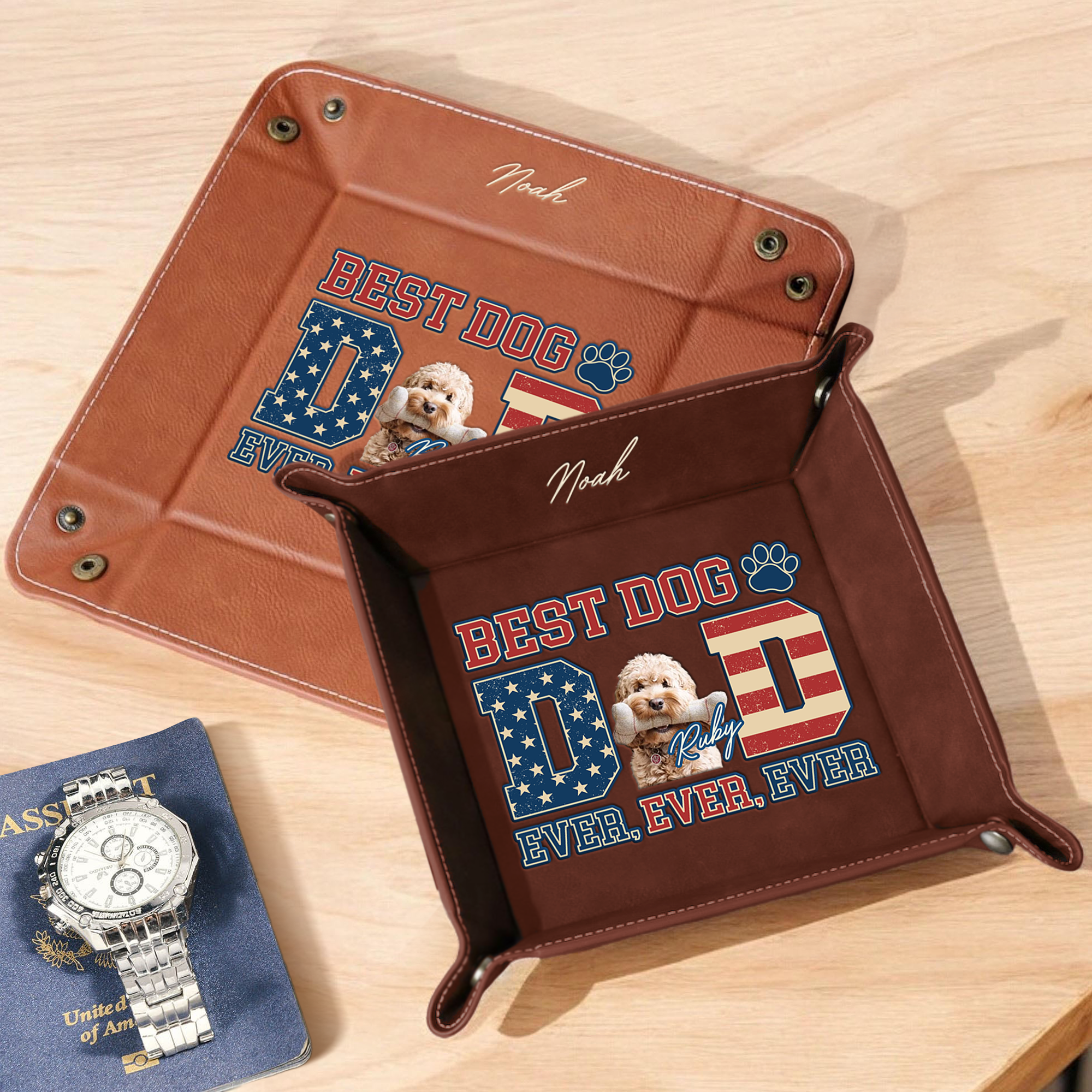 Celebrate the ultimate dog dad with our personalized leather valet tray! This hot-selling custom photo accessory is the perfect gift for birthdays, Father's Day, or any special occasion. Add your favorite photo of him with his furry best friend for a thoughtful keepsake he'll use daily to organize keys, wallet, and essentials. Order now – these are selling fast!