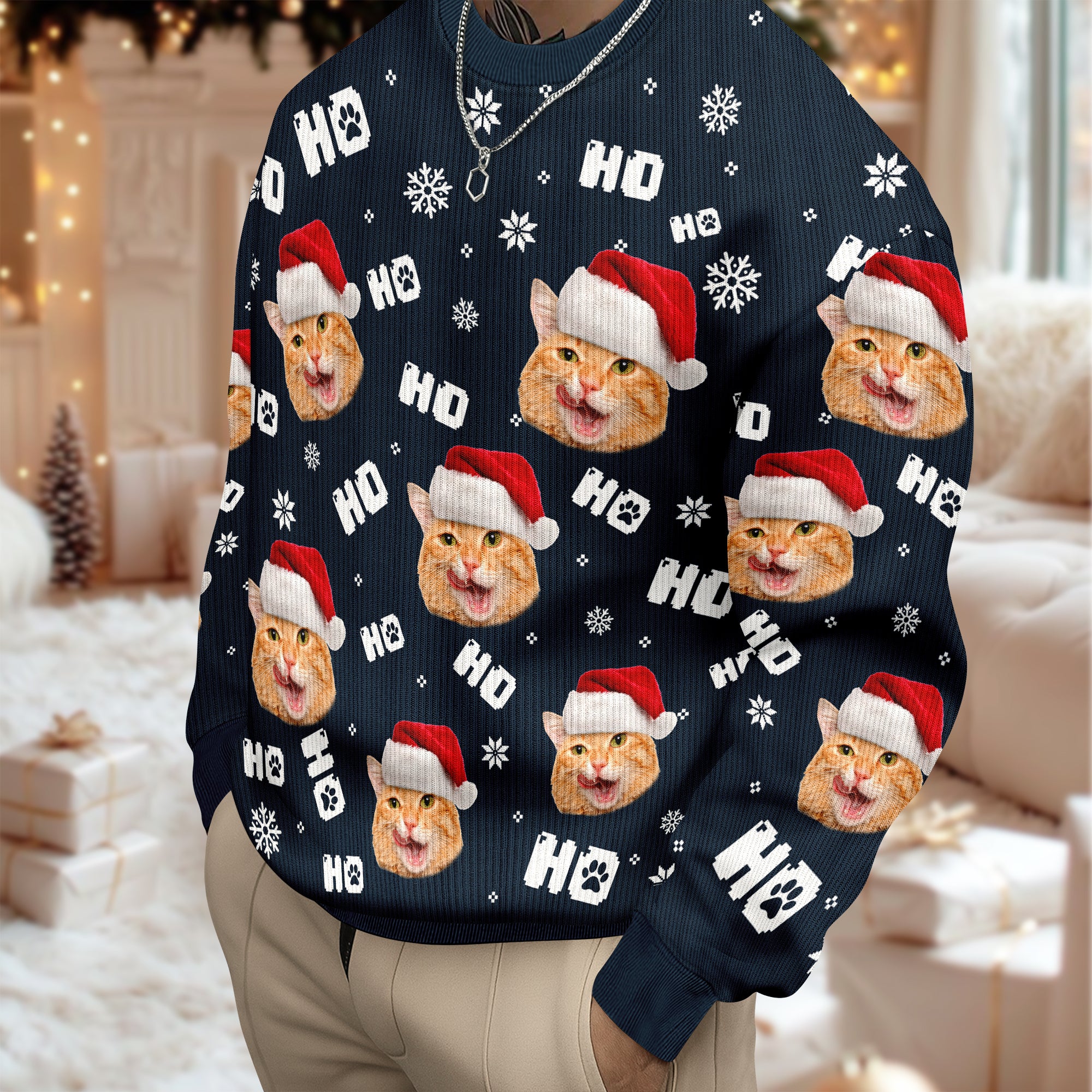 Celebrate the holiday season with a personalized twist! This custom funny cat photo Christmas ugly sweater is the perfect gift for any cat lover. Made to order with your cat's photo, it adds humor and charm to festive gatherings. Comfortable and unique, it’s a memorable way to show your love for feline friends while spreading holiday cheer.