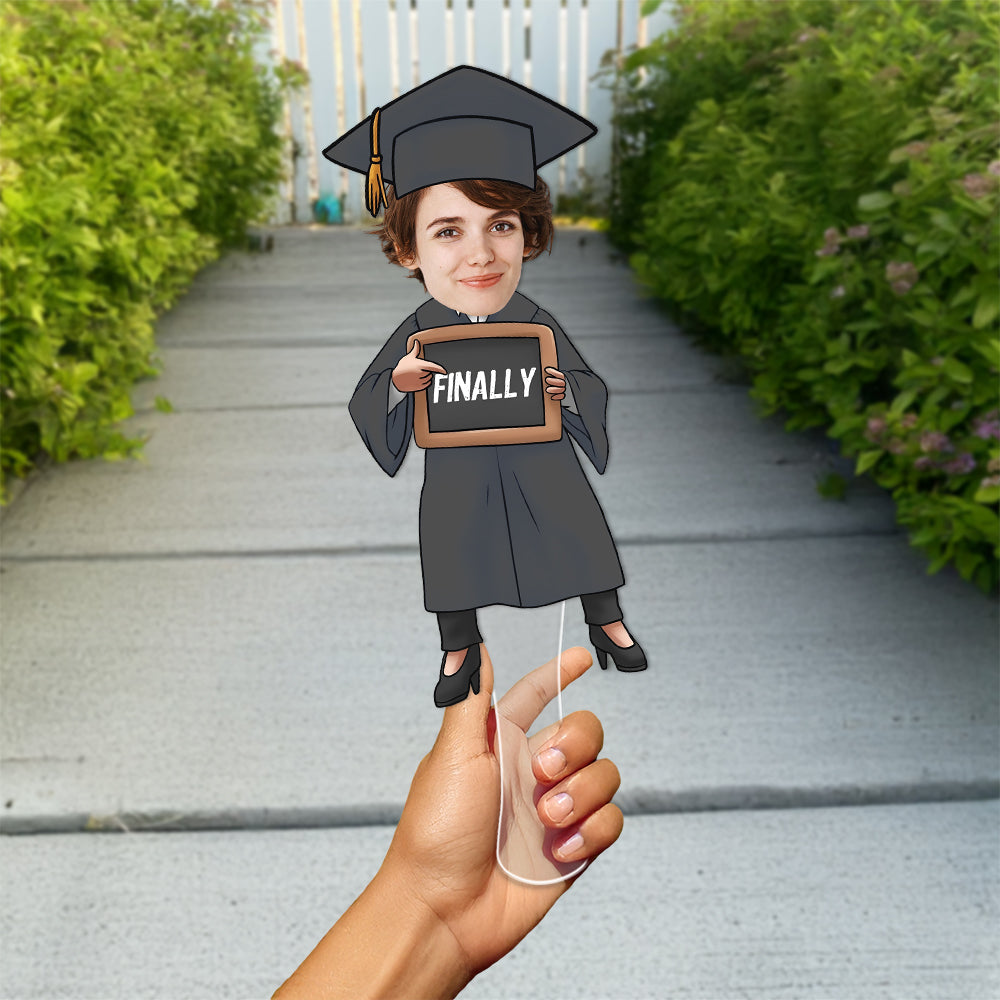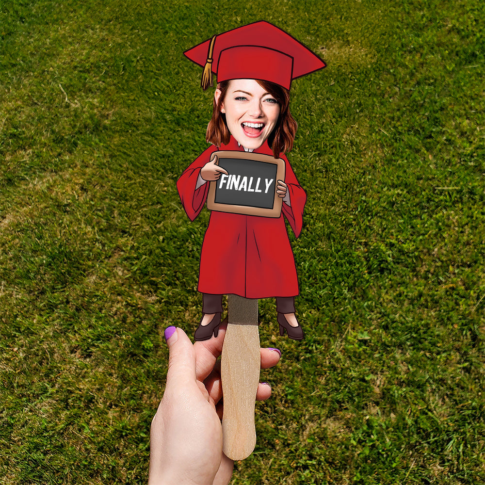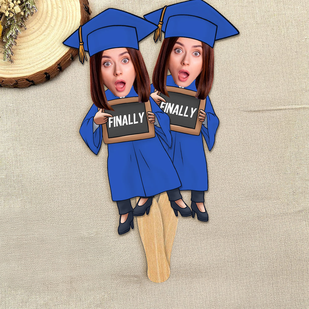 Celebrate graduation with a fun twist using this custom funny face “Finished Graduate” face fan. Personalize it with your favorite photo to create a hilarious and eye-catching accessory for the big day. Perfect for ceremonies, parties, and photo booths, this fan adds excitement and laughter while making your celebration truly unforgettable.