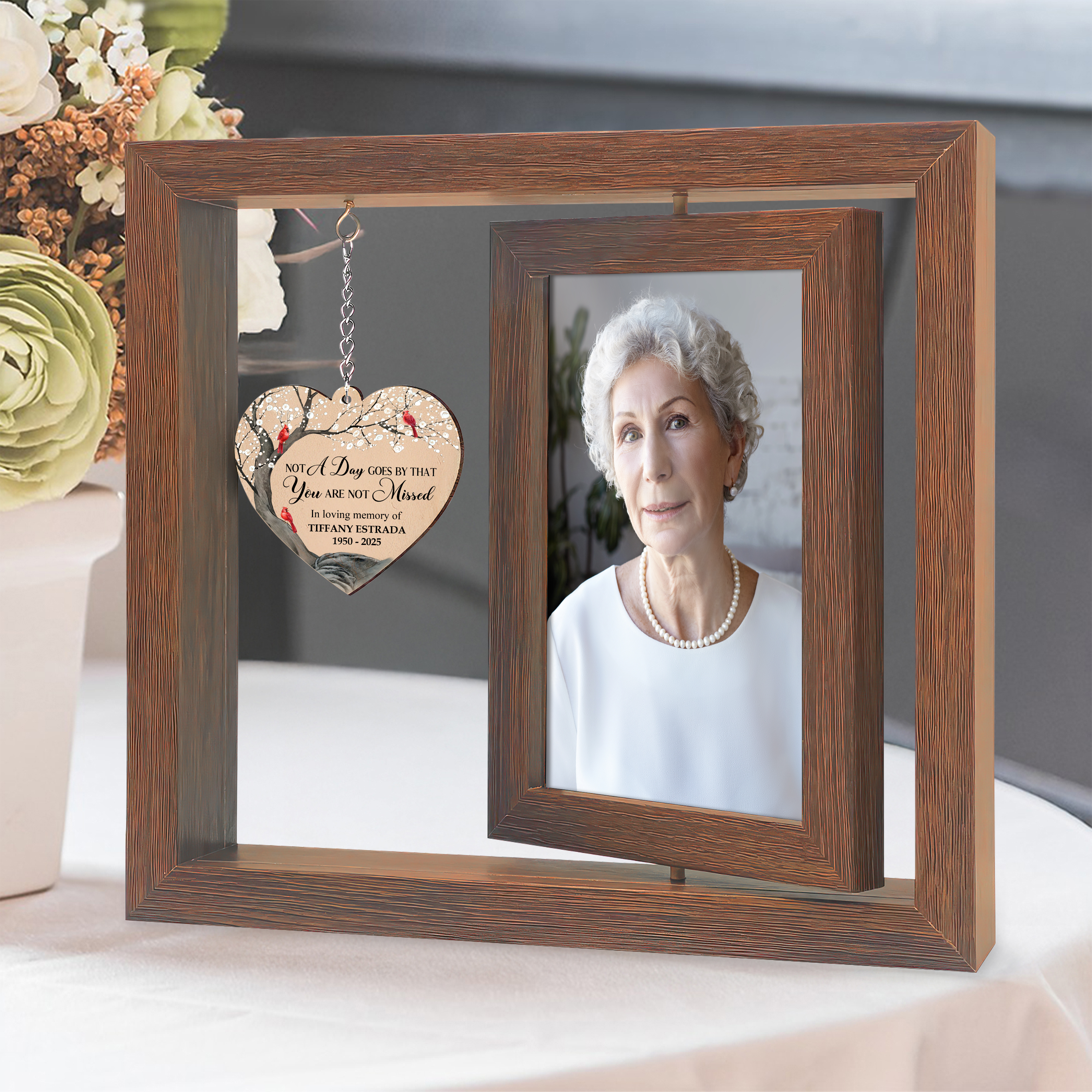 Honor your loved ones with the I'm Always With You Memorial Rotating Wooden Picture Frame. This personalized frame offers a heartfelt way to keep family memories close, featuring a rotating design that beautifully displays cherished photos. Crafted from warm wood, it adds a timeless touch to any space, making it a meaningful tribute that brings comfort and connection every day.