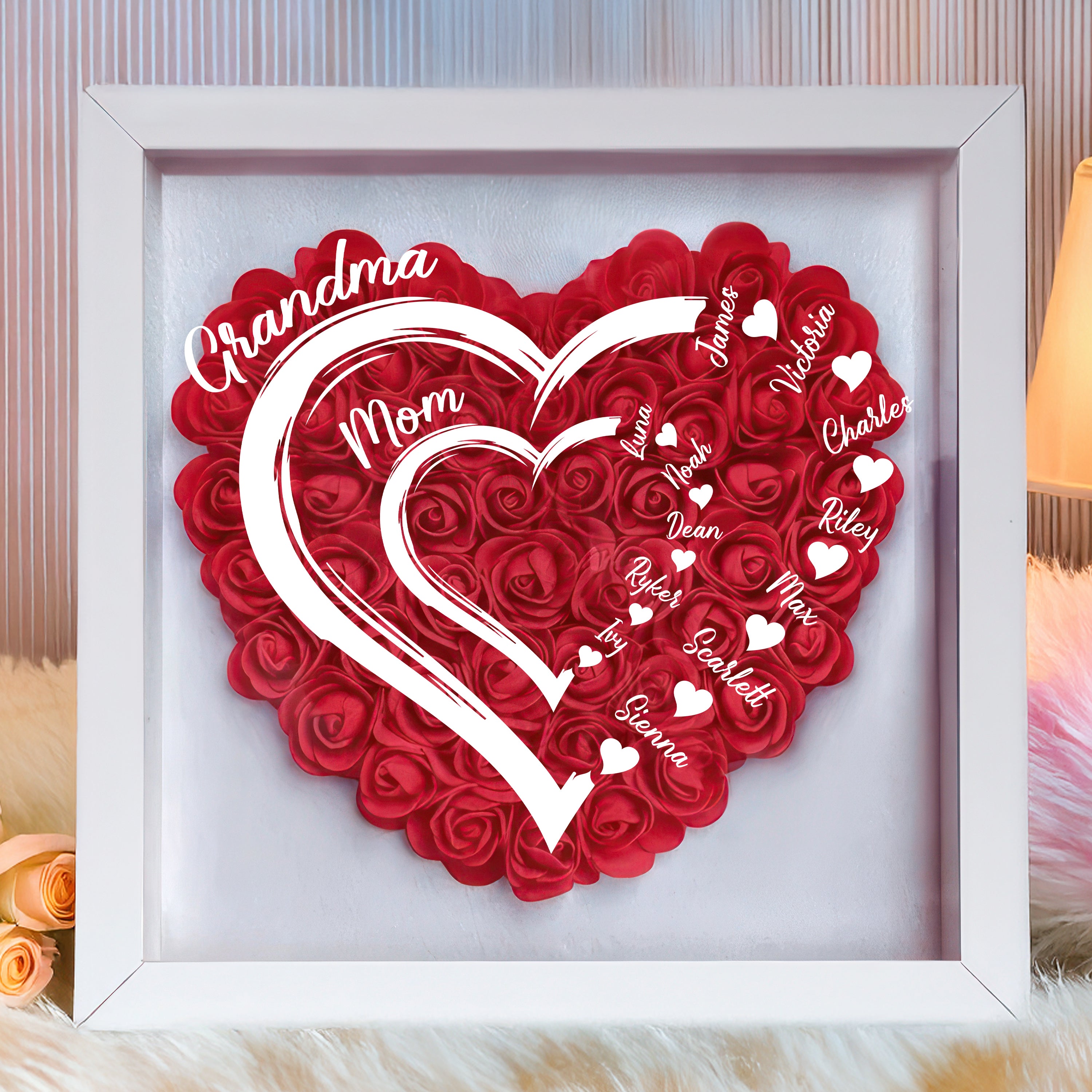 Custom Name Mom To Grandma Mother's Day Heart Flower Shadow Box TH10 892559
