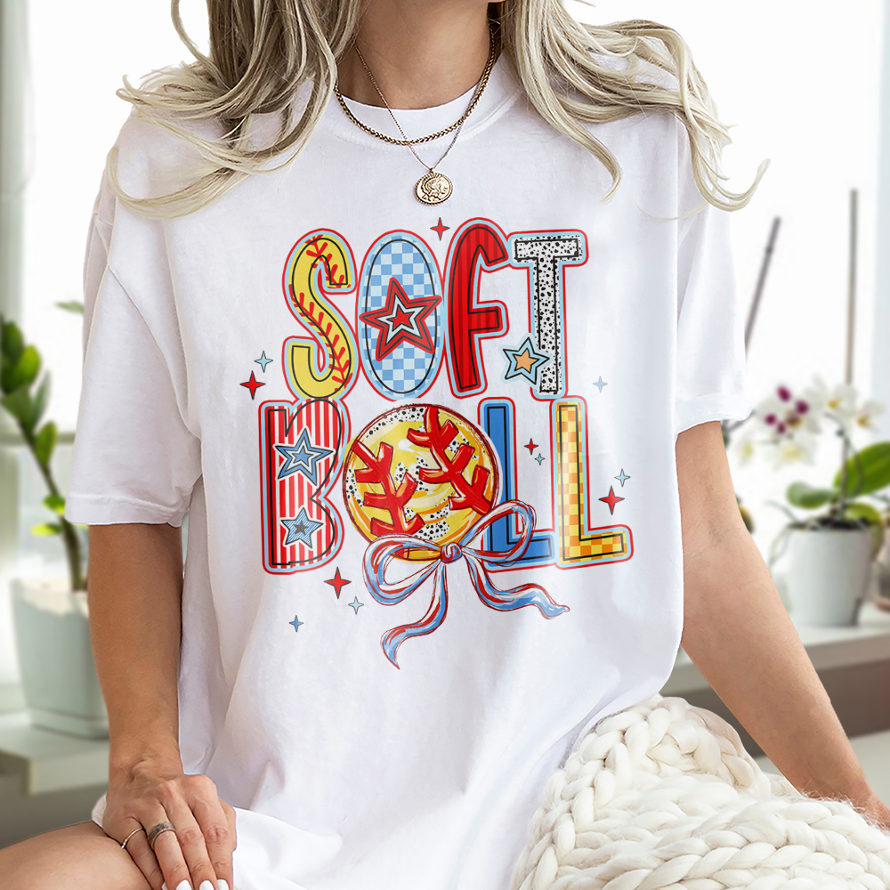 Brushstroke Softball Mom Coquette Family Bright Shirt HO82 893548