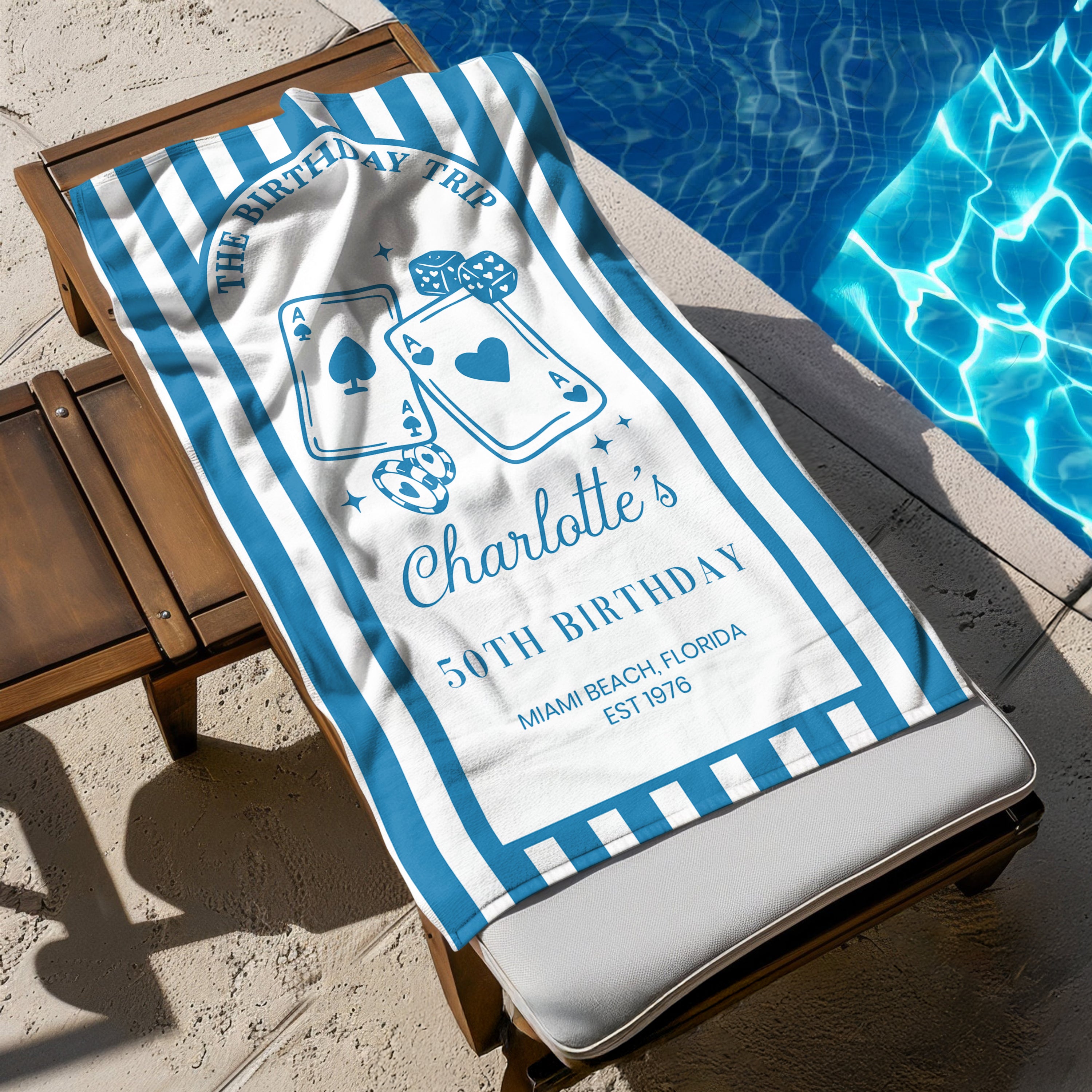 Celebrate in style with this custom birthday trip beach towel. Personalize it with a name or special detail to create a fun and memorable coastal design. Perfect for vacations, beach days, and poolside lounging, it’s a thoughtful birthday gift for Mom that adds a personal touch to every sunny moment.