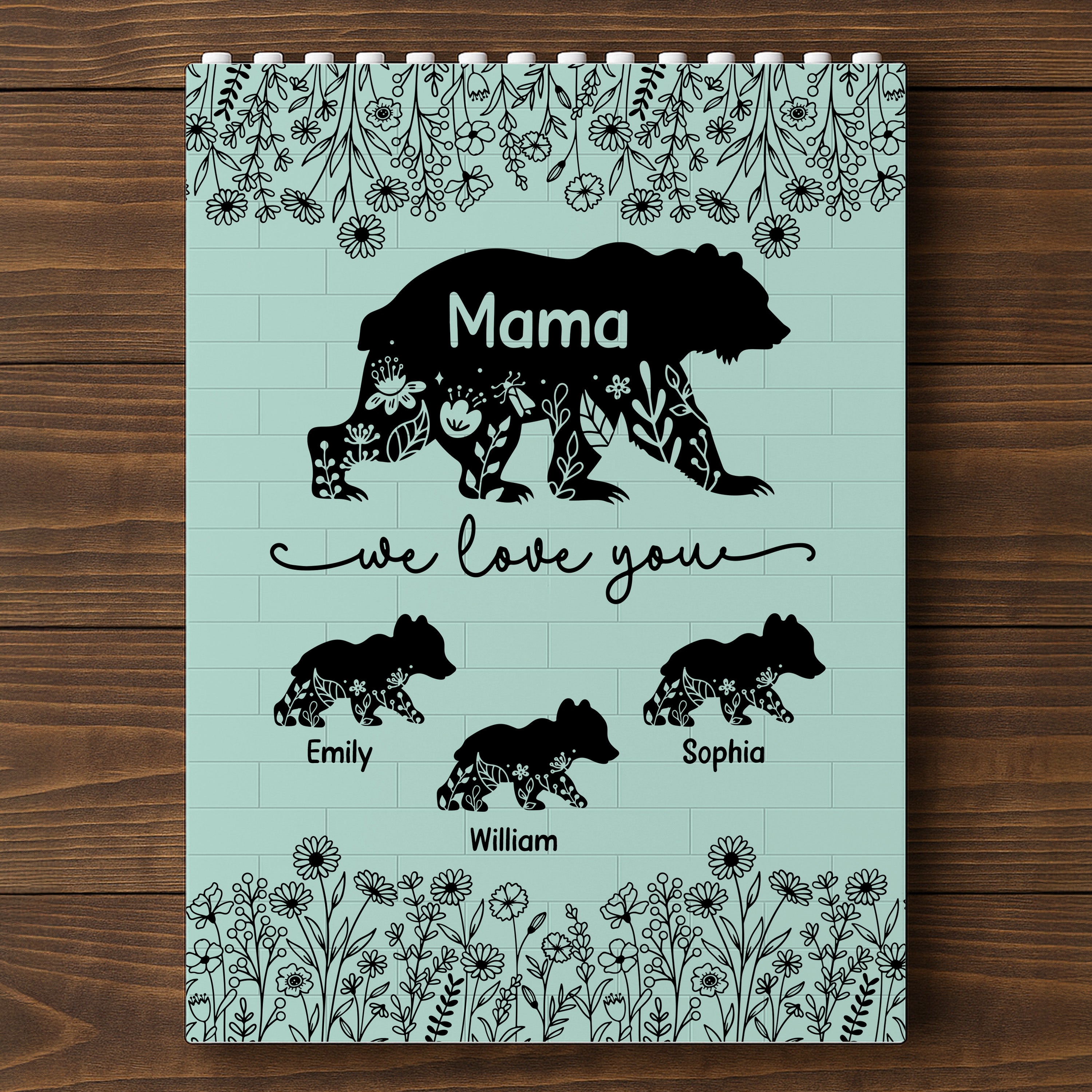 Celebrate motherhood with this charming personalized building brick set featuring a floral mama bear design. Perfect for Mother's Day, this unique gift combines creativity with heartfelt sentiment. Each set includes colorful brick blocks that can be assembled into a beautiful display piece, making it an ideal keepsake for the special mom in your life. Customize it with a personal touch to create a one-of-a-kind present she'll treasure. Whether displayed on a shelf or desk, this thoughtful gift blends playful design with meaningful personalization for an unforgettable Mother's Day surprise.