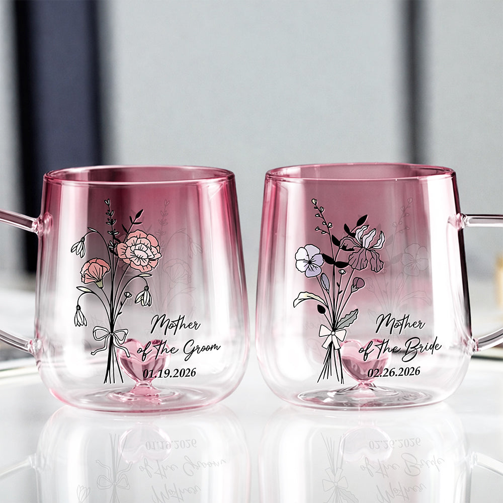 Celebrate the mother of the bride or groom with this personalized pink gradient glass mug. Customized with her name or a special message, it adds a sweet and elegant touch to her daily routine. The soft gradient design makes it both stylish and meaningful. A thoughtful wedding gift she’ll cherish and use every day.