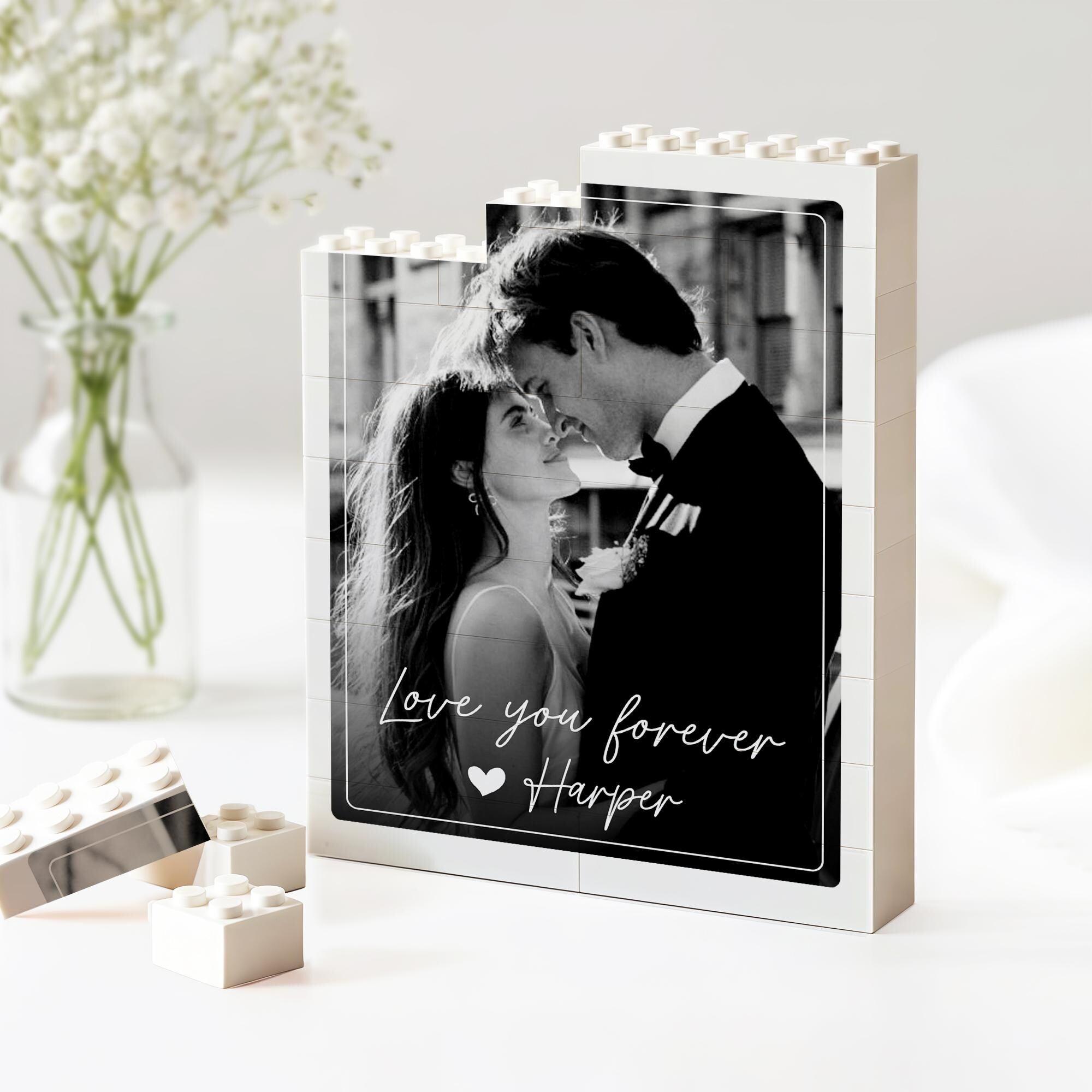 Celebrate your love story with this one-of-a-kind personalized couple photo puzzle. Transform your favorite memories into an interactive building brick experience that doubles as meaningful décor. Perfect for anniversaries, engagements, or just because—this customized gift combines nostalgia with modern creativity. Watch your cherished moments come to life as you build together, creating quality time and lasting memories. An unforgettable present that says "us" in the most personal way possible.