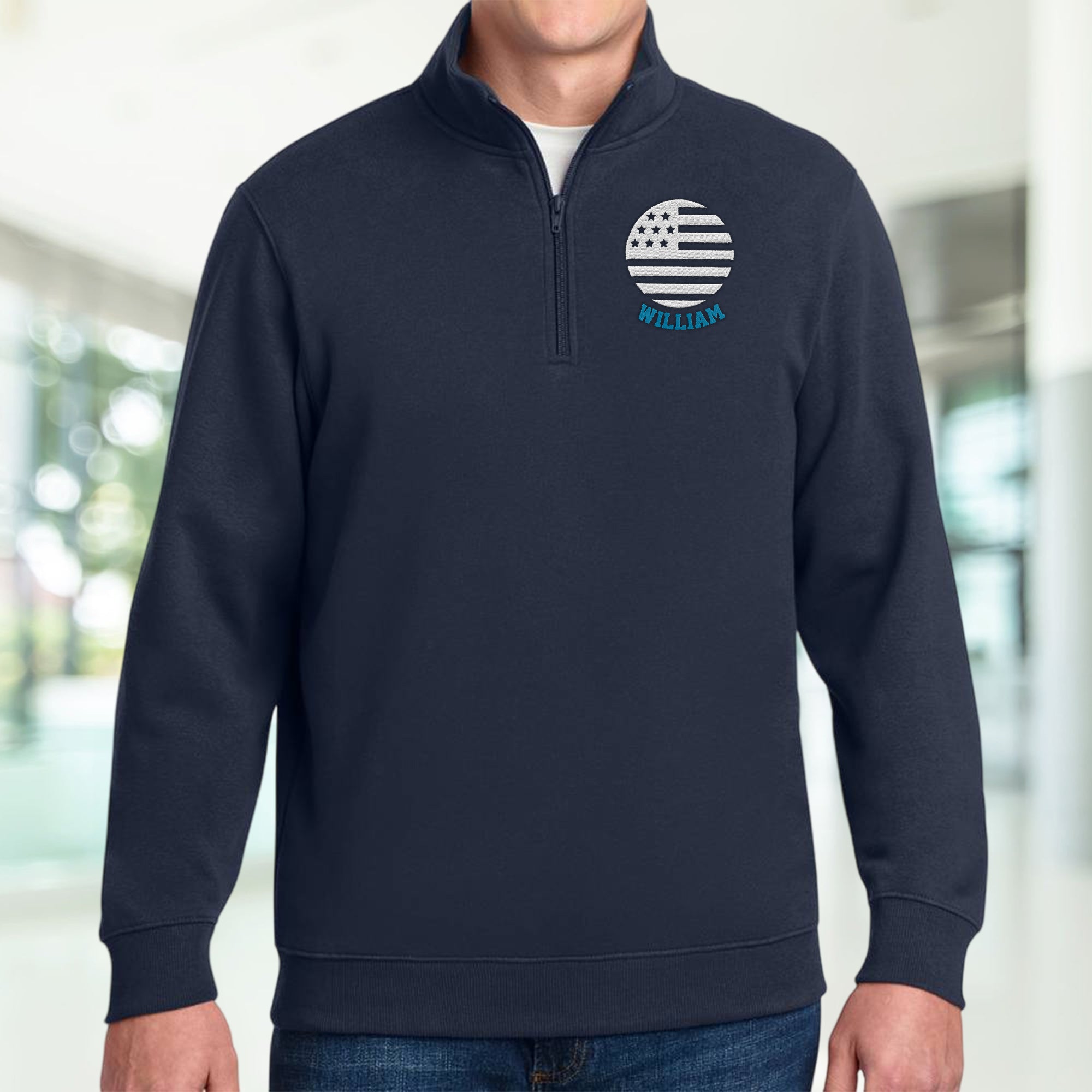 Personalized Name US Flag Embroidered Quarter Zip Sweater, Unique Enthusiast Gift HA75 898634
