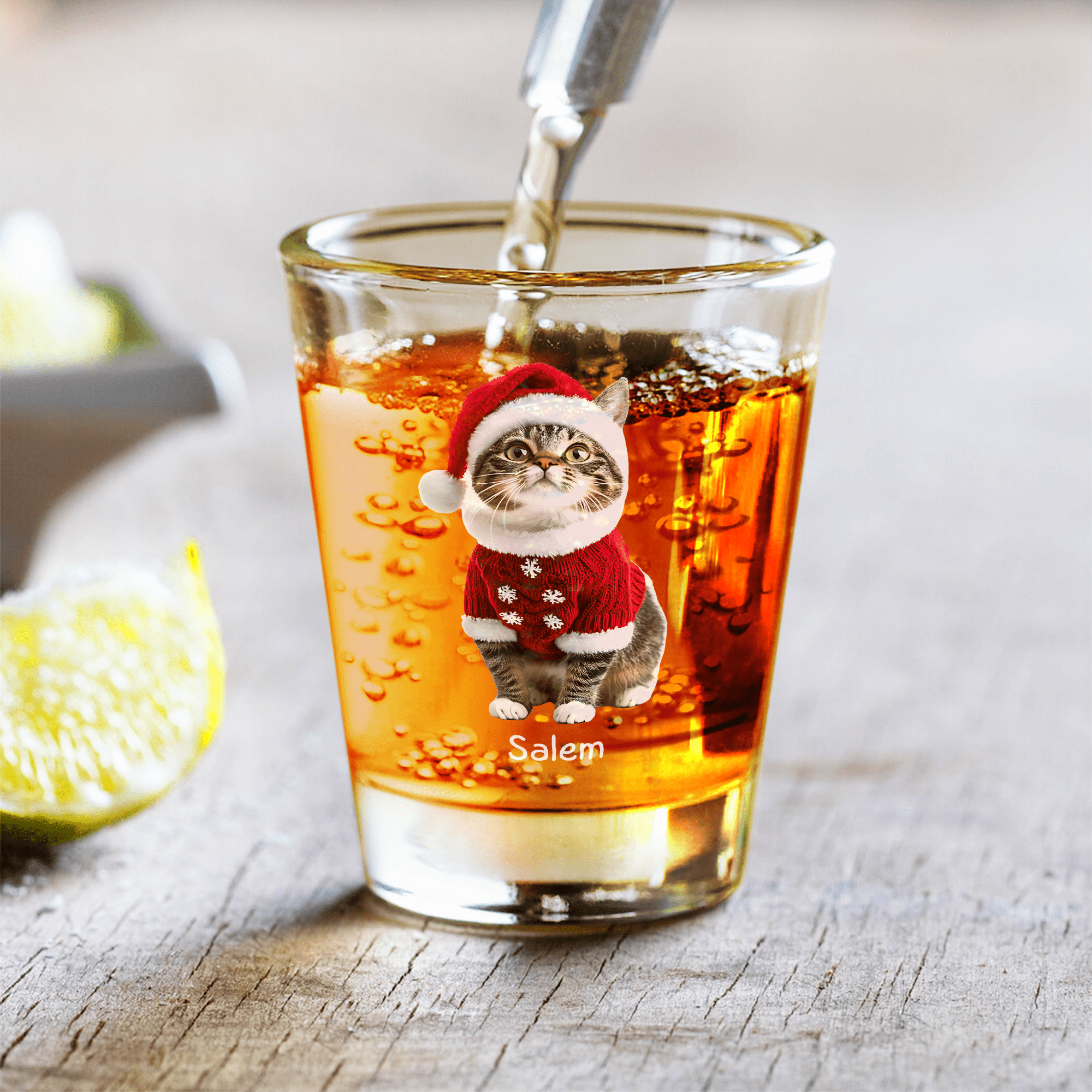 Capture your love for cats with our Custom Cat Photo Shot Glass! This must-have for cat lovers features your favorite feline photo, perfect for any party or gathering. Show off your love and create a unique keepsake with this one-of-a-kind shot glass!
