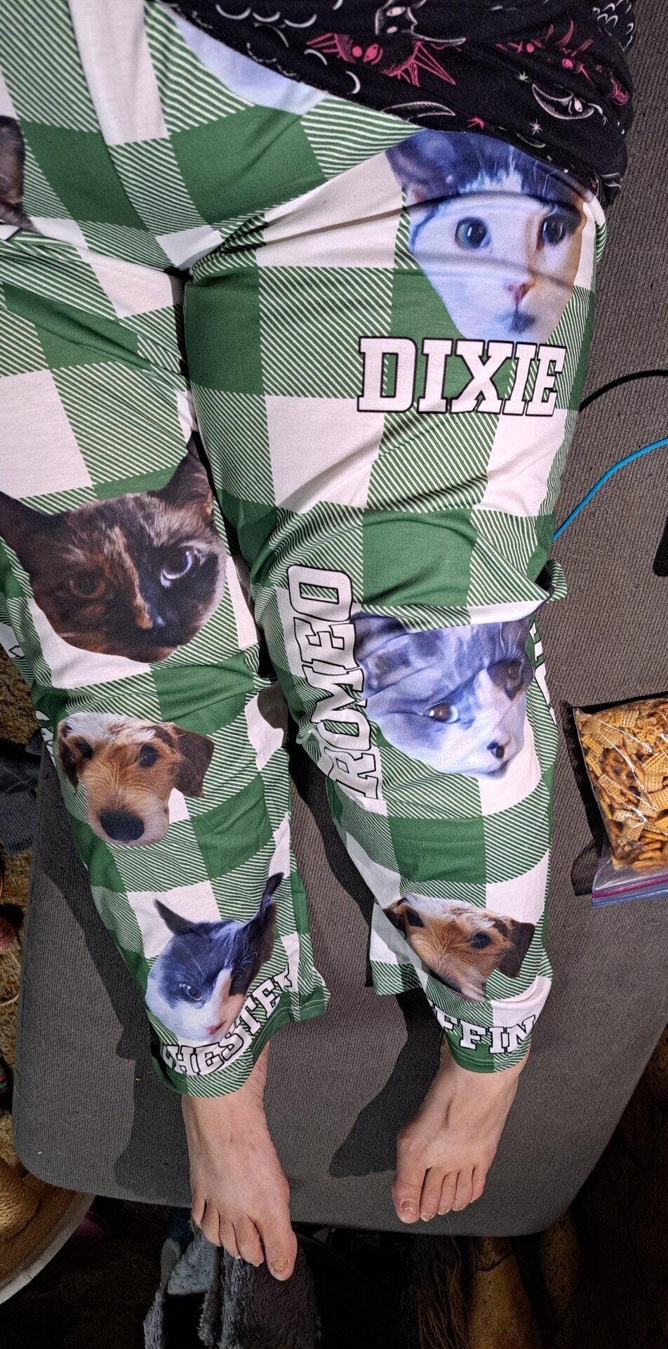 Discover the perfect Christmas gift for the special dog and cat lover in your life. These custom designed sweatpants feature a festive candy heart pattern of both humans and furry friends for a look that is both festive and heart-warming. Show them you care this holiday season with a gift that honors their special bond.