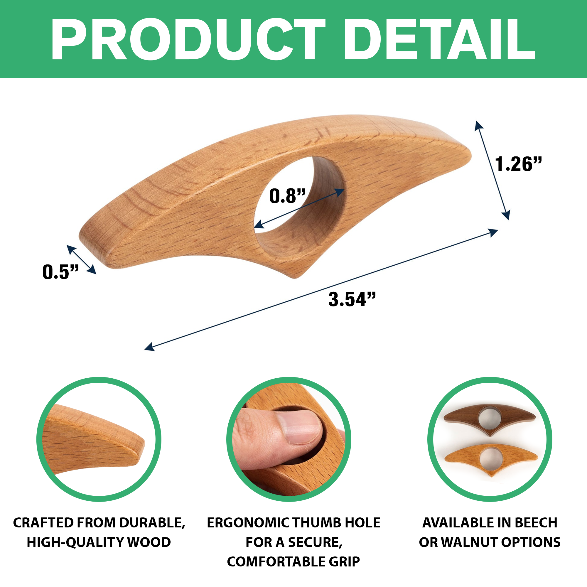 Material: High-quality wood, available in Beech and Walnut. Each piece is hand-polished for a smooth finish and lasting durability.