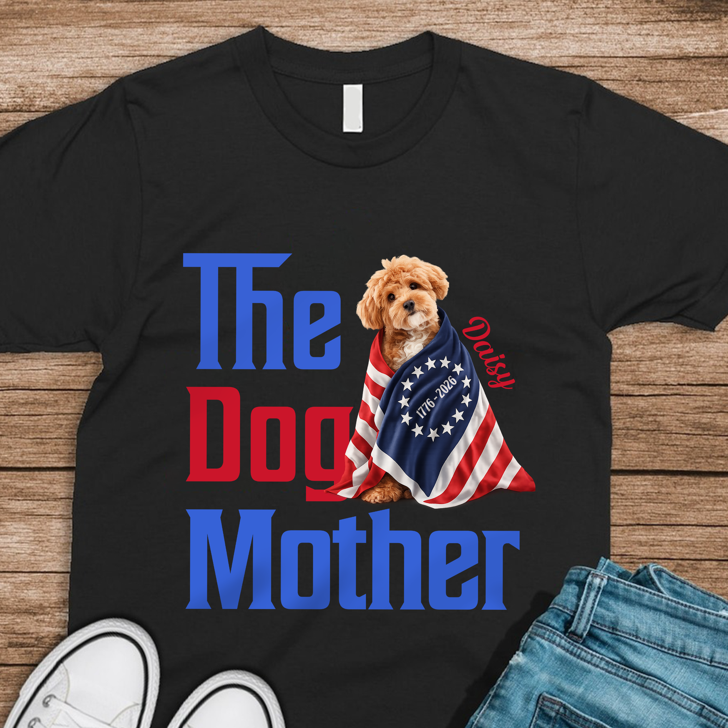 Celebrate your love for your furry family and American pride with this exclusive personalized shirt. Perfect for dog parents who want to honor both their beloved pets and the nation's 250th anniversary, this custom design lets you add your own touch to a meaningful garment. Whether you're the dogmother, dogfather, or both, wear your pet parent status with patriotic flair. Soft, comfortable fabric makes it ideal for everyday wear, casual outings, or special occasions. A unique gift for fellow dog lovers who appreciate quality and personalization.