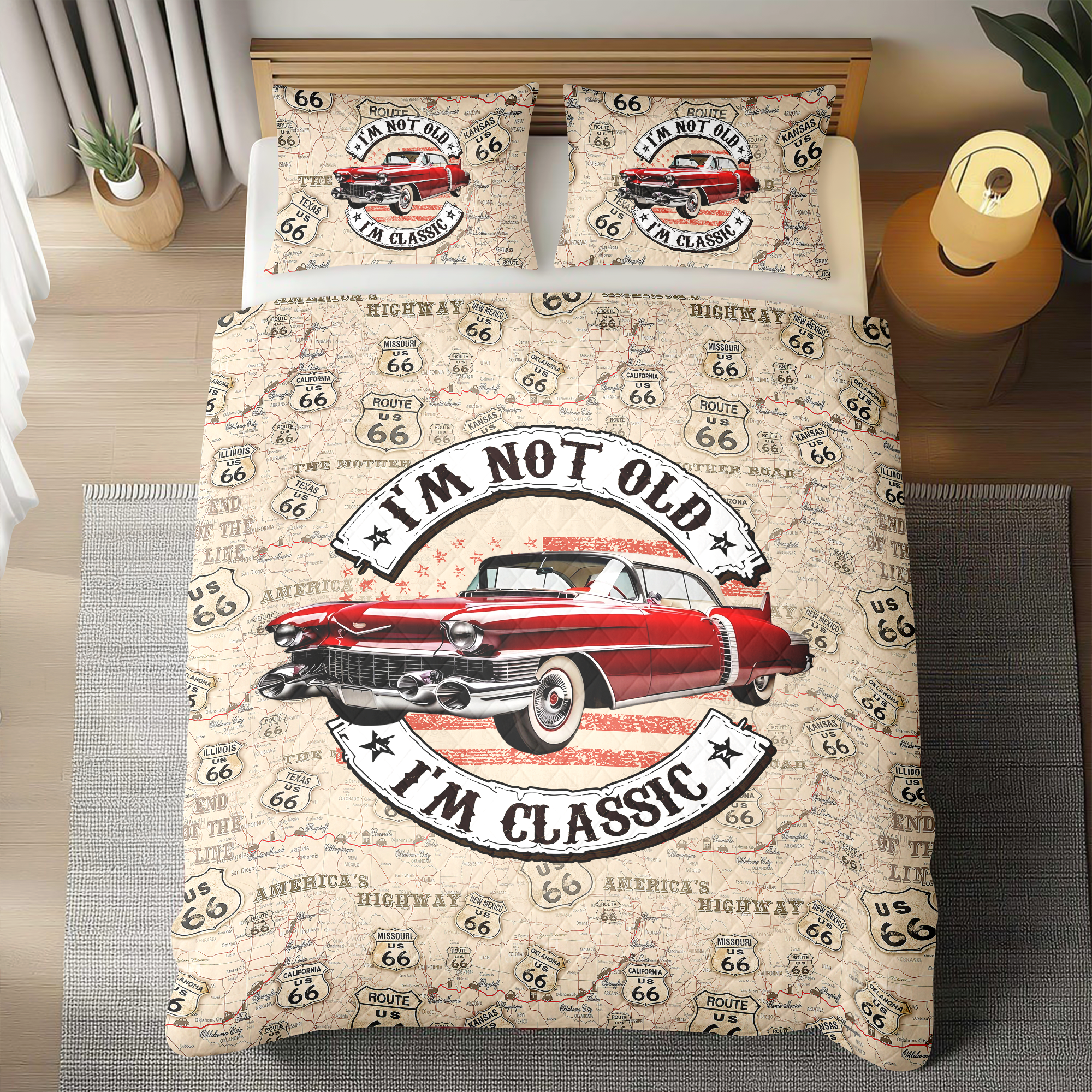 Perfect for the car enthusiast in your life, this custom quilt bedding set transforms cherished vehicle memories into cozy bedroom décor. Upload your favorite car photo and watch it come to life on premium fabric, complete with the iconic Route 66 design that celebrates the open road. Whether they're into classic cars, modern rides, or their own prized possession, this personalized set makes a thoughtful gift that combines comfort with automotive passion. Ideal for car lovers who appreciate unique, meaningful home décor that tells their story.