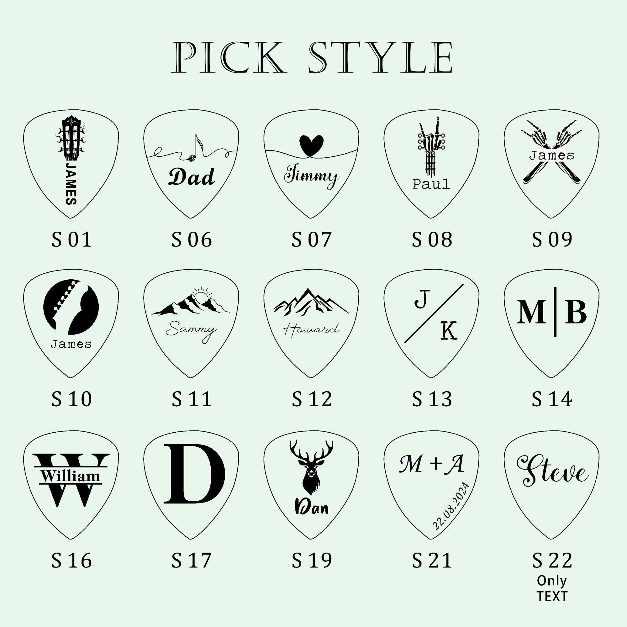• The pick Style (S13, S14, S15, S16, S17, S18) will use the default font.