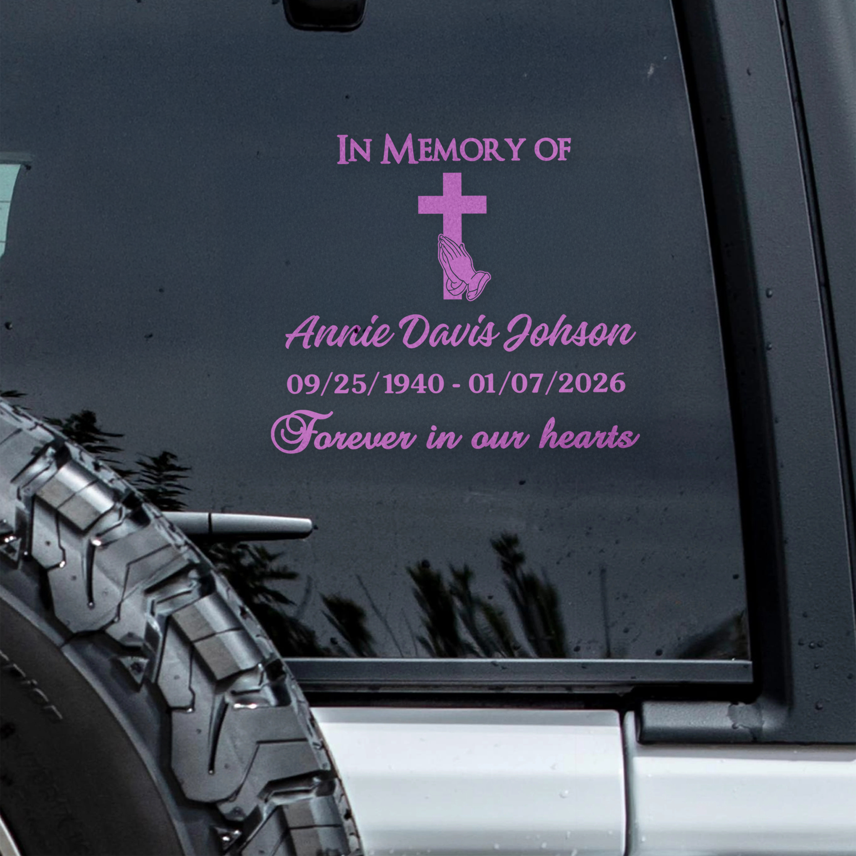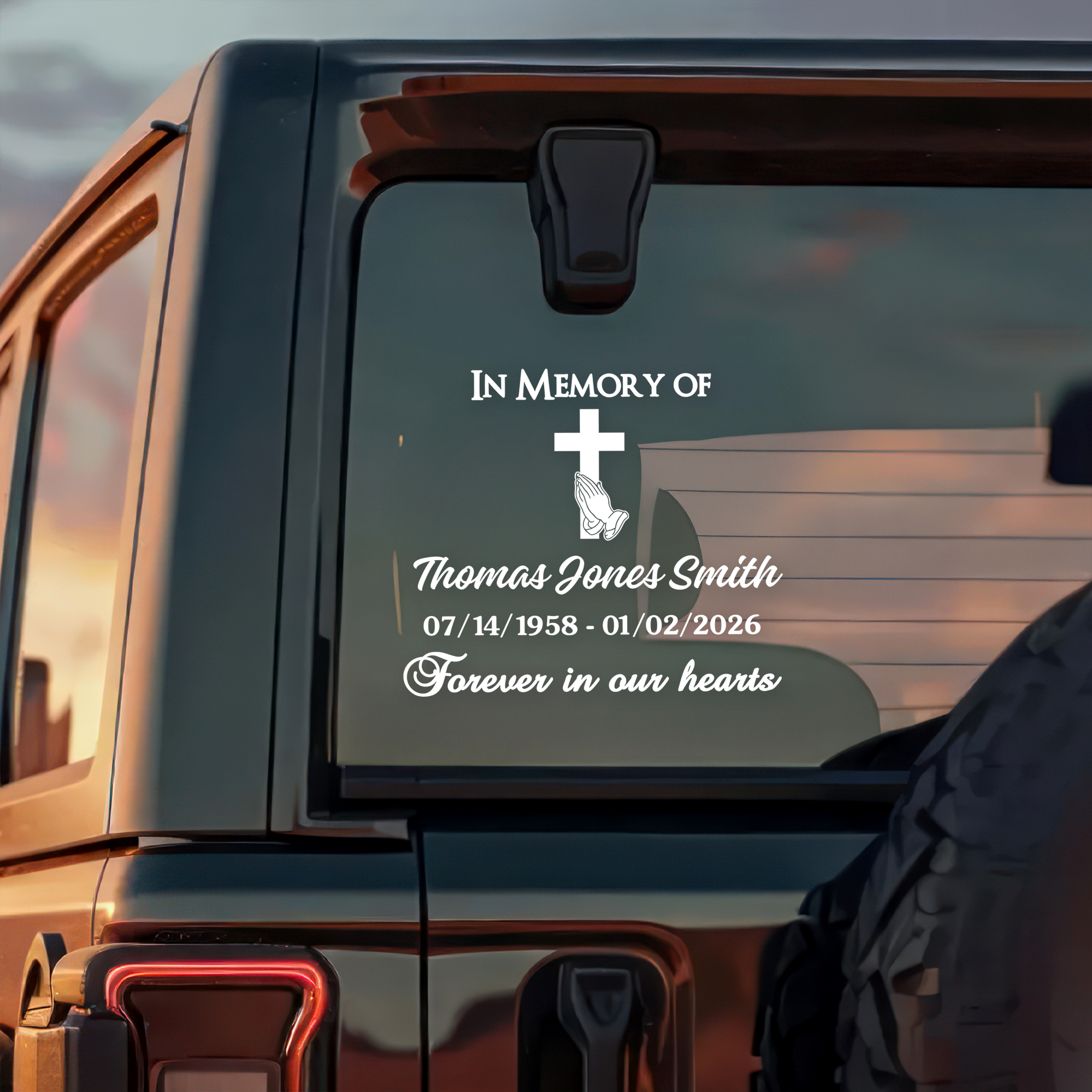 Honor the memory of a loved one with this personalized memorial car window decal. Crafted with precision, this durable sticker displays a heartfelt tribute that travels with you every day. Made from high-quality vinyl, it resists fading, weather, and UV rays while maintaining vibrant clarity. Perfect for dashboards, rear windows, or any smooth surface, this decal serves as a meaningful way to keep cherished memories close. A touching tribute that speaks volumes without words.