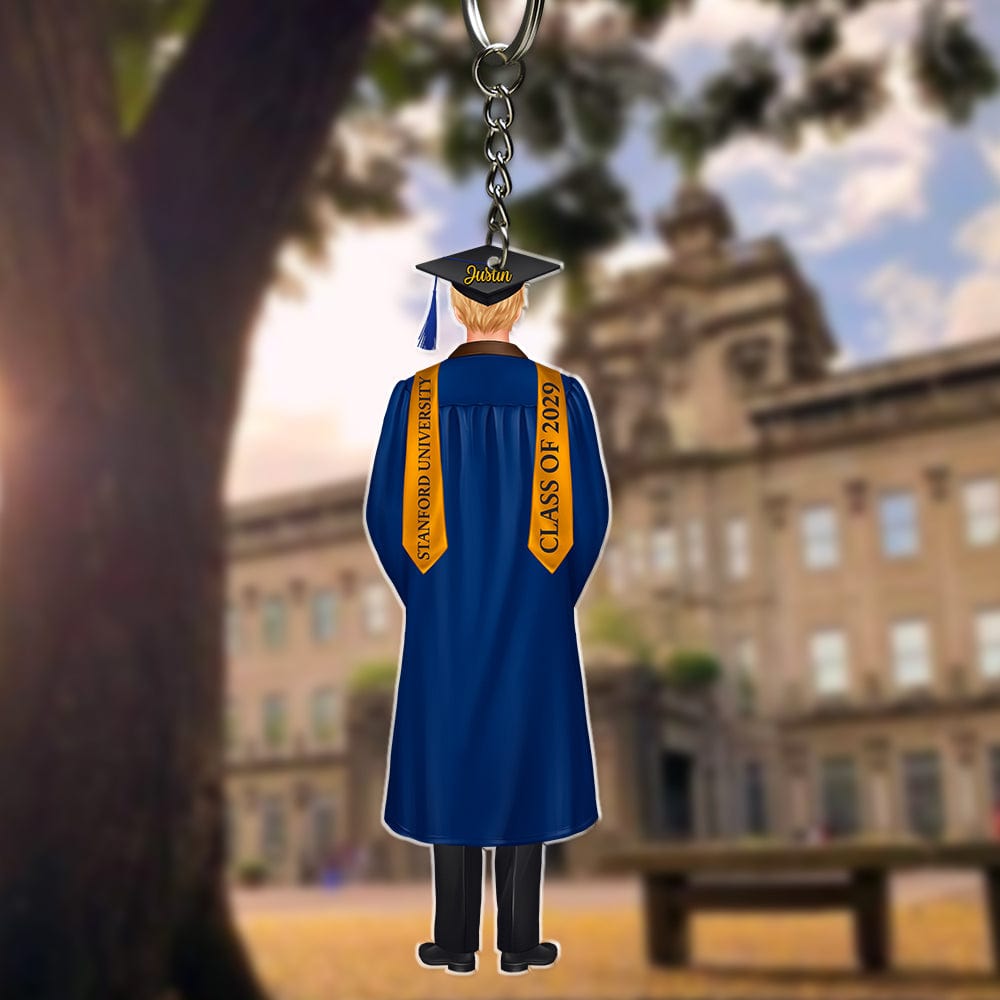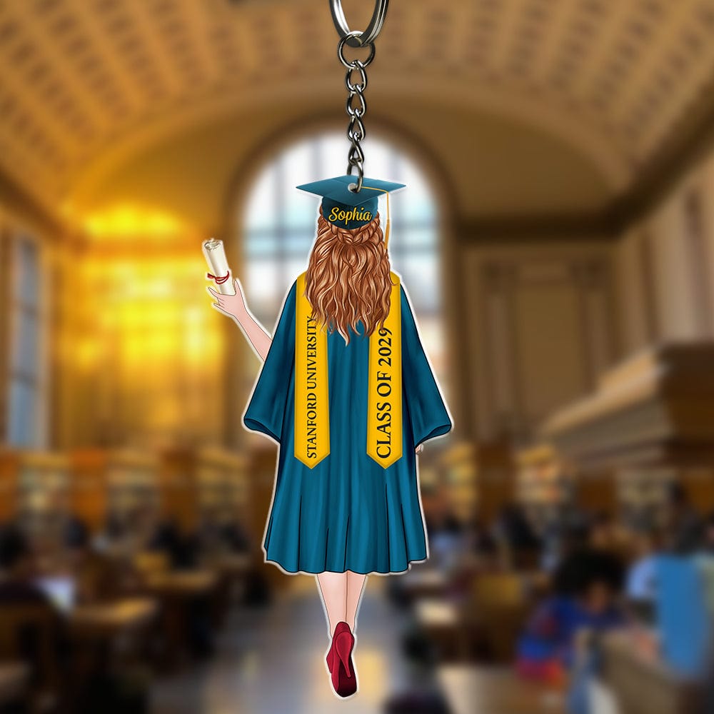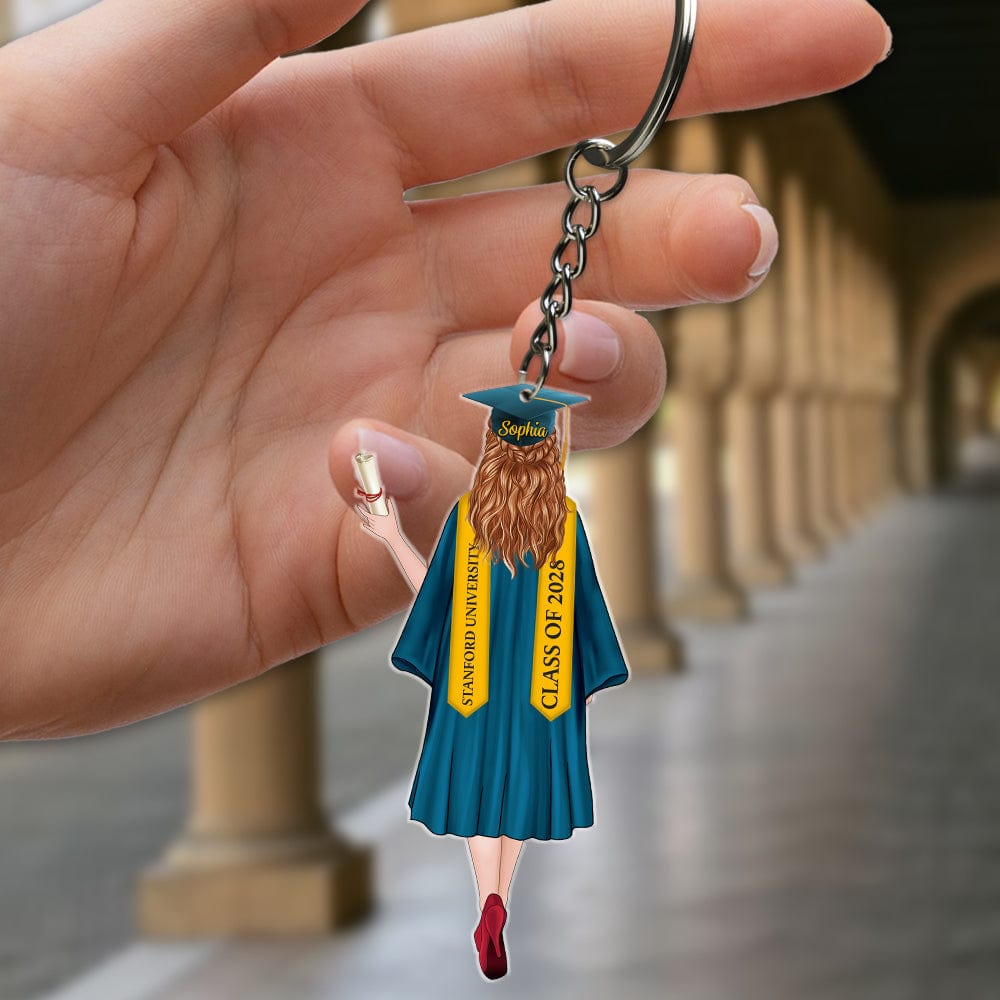 Celebrate the graduates in your life with a personalized acrylic keychain! Perfect as a gift for friends and family, this keychain is a thoughtful way to say "congratulations" and commemorate this special occasion. Show your pride and support with this unique and customizable token of appreciation.