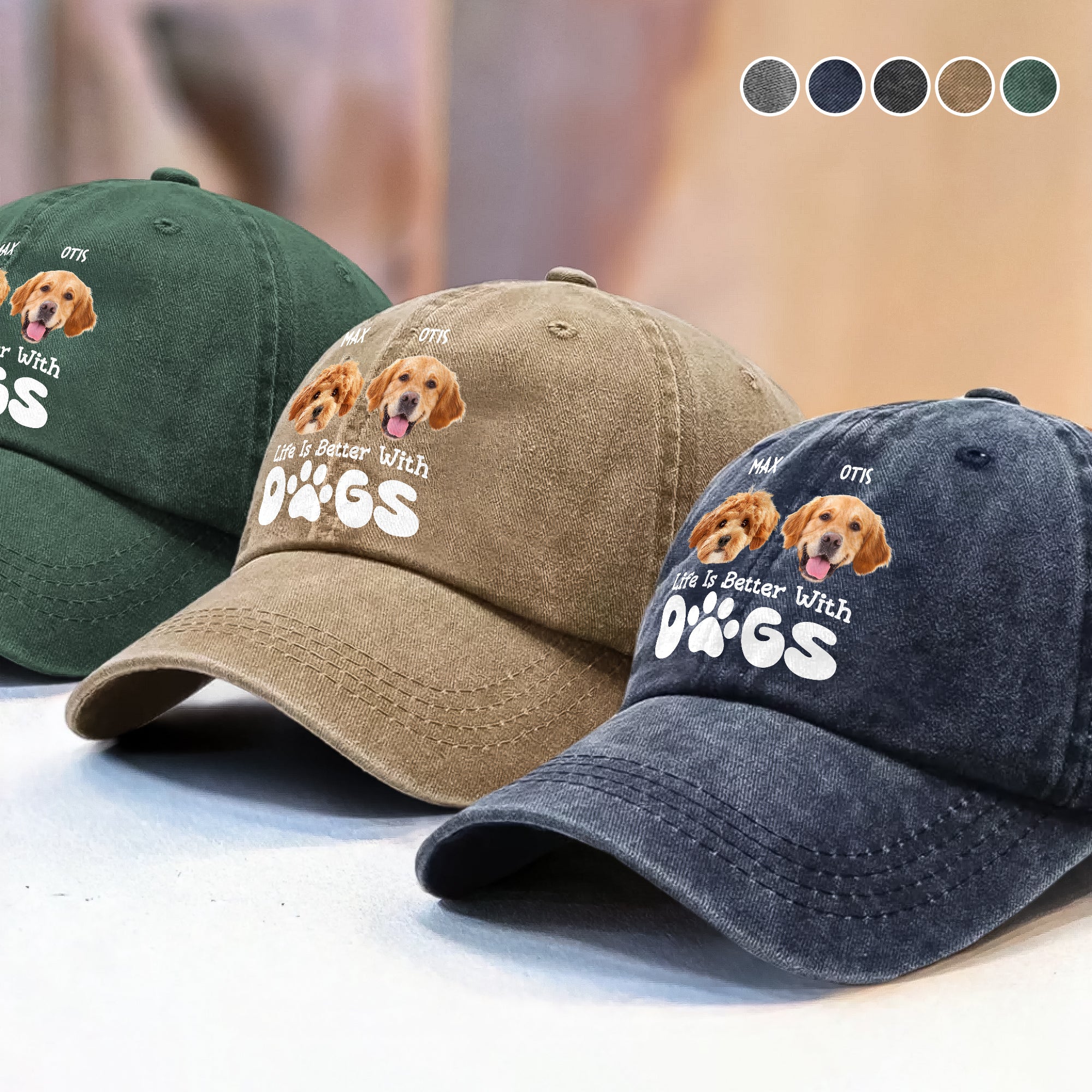 Show your love for dogs with this Custom Photo Life Is Better With Dogs Washed Denim Baseball Cap. Crafted from durable washed denim, it offers a comfortable fit and timeless style. Personalize it with your favorite photo to create a unique accessory that celebrates your bond with your furry friend. Perfect as a thoughtful gift or a daily reminder that life truly is better with dogs.