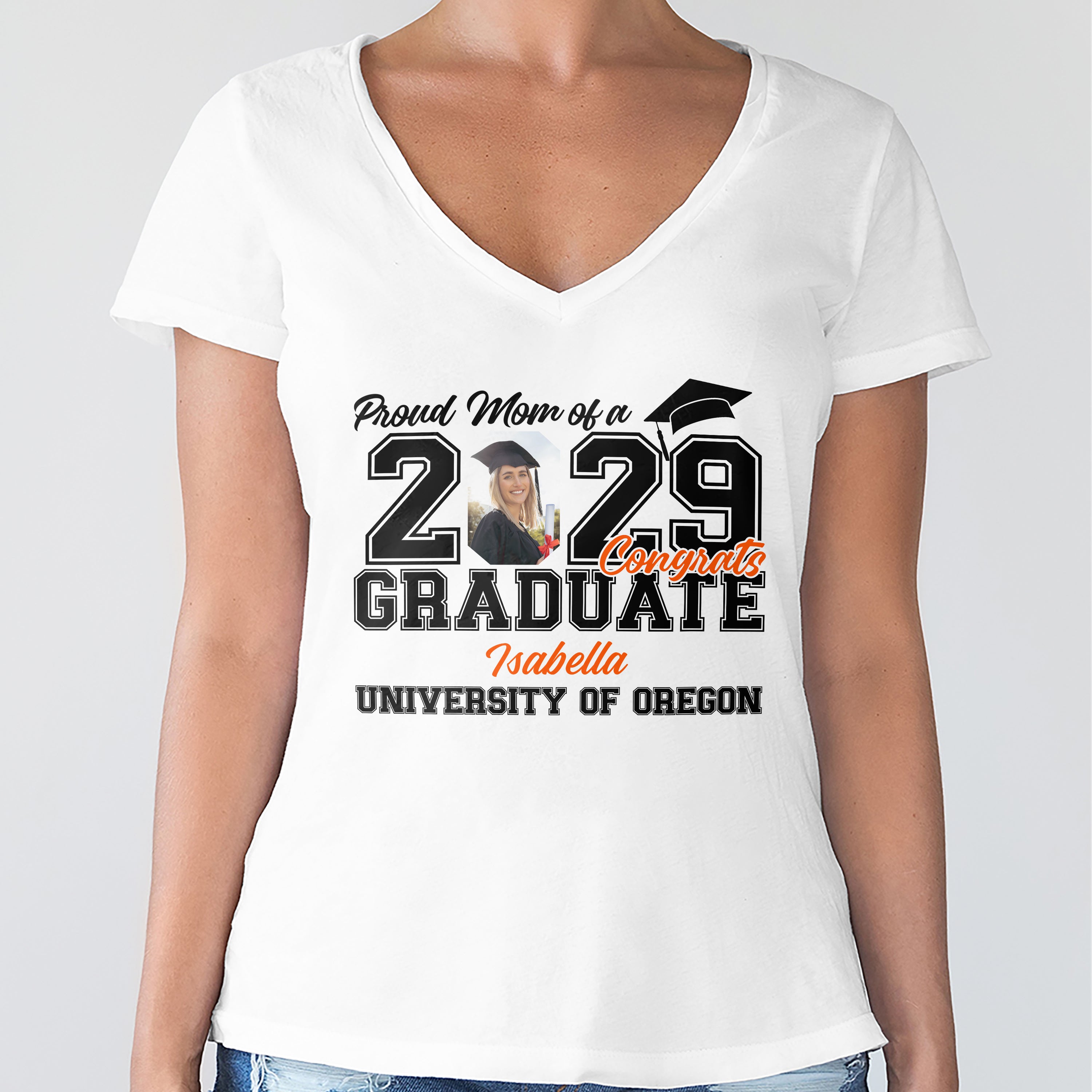 Celebrate your graduate in style with this custom photo shirt! Perfect for proud parents, this personalized design lets you showcase your senior's achievement with a vibrant, eye-catching look. An ideal graduation gift that combines sentiment with wearable pride—wear your joy!