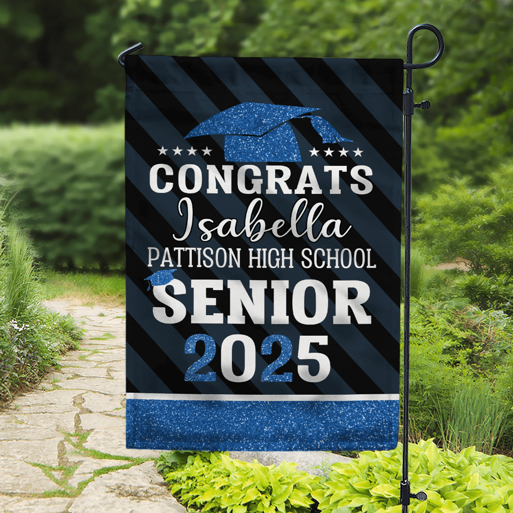 Celebrate your graduate's big day with our "Upload School Logo Class of 2025 Graduation" Garden Flag! Perfect as a gift to show off their accomplishment and school pride. Let them proudly display this flag in their garden for all to see. Congrats, Class of 2024!