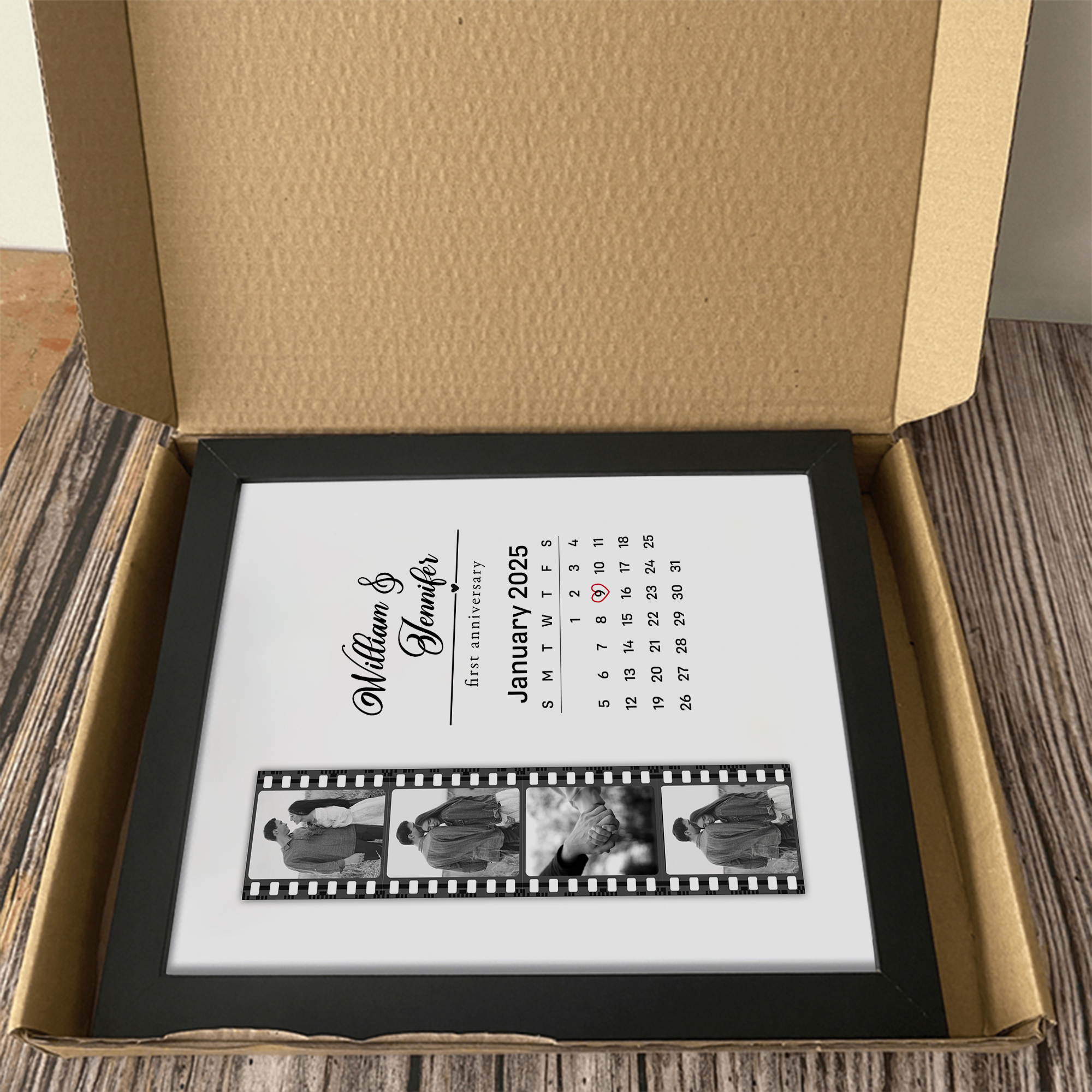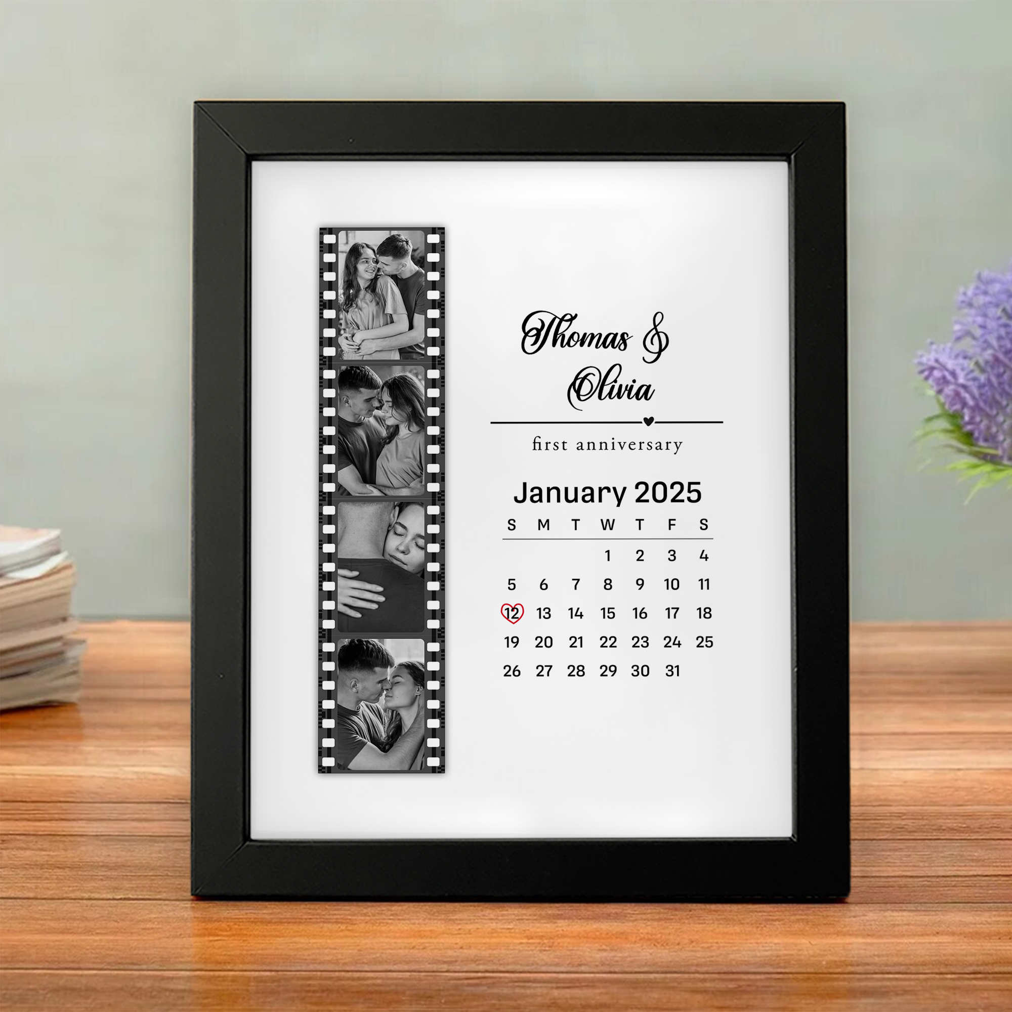 Celebrate your love story with this stunning personalized photo frame featuring your favorite couple's photo paired with a custom calendar. Perfect for anniversaries, Valentine's Day, or any special occasion, this thoughtful gift transforms cherished memories into a beautiful keepsake they'll treasure year-round.