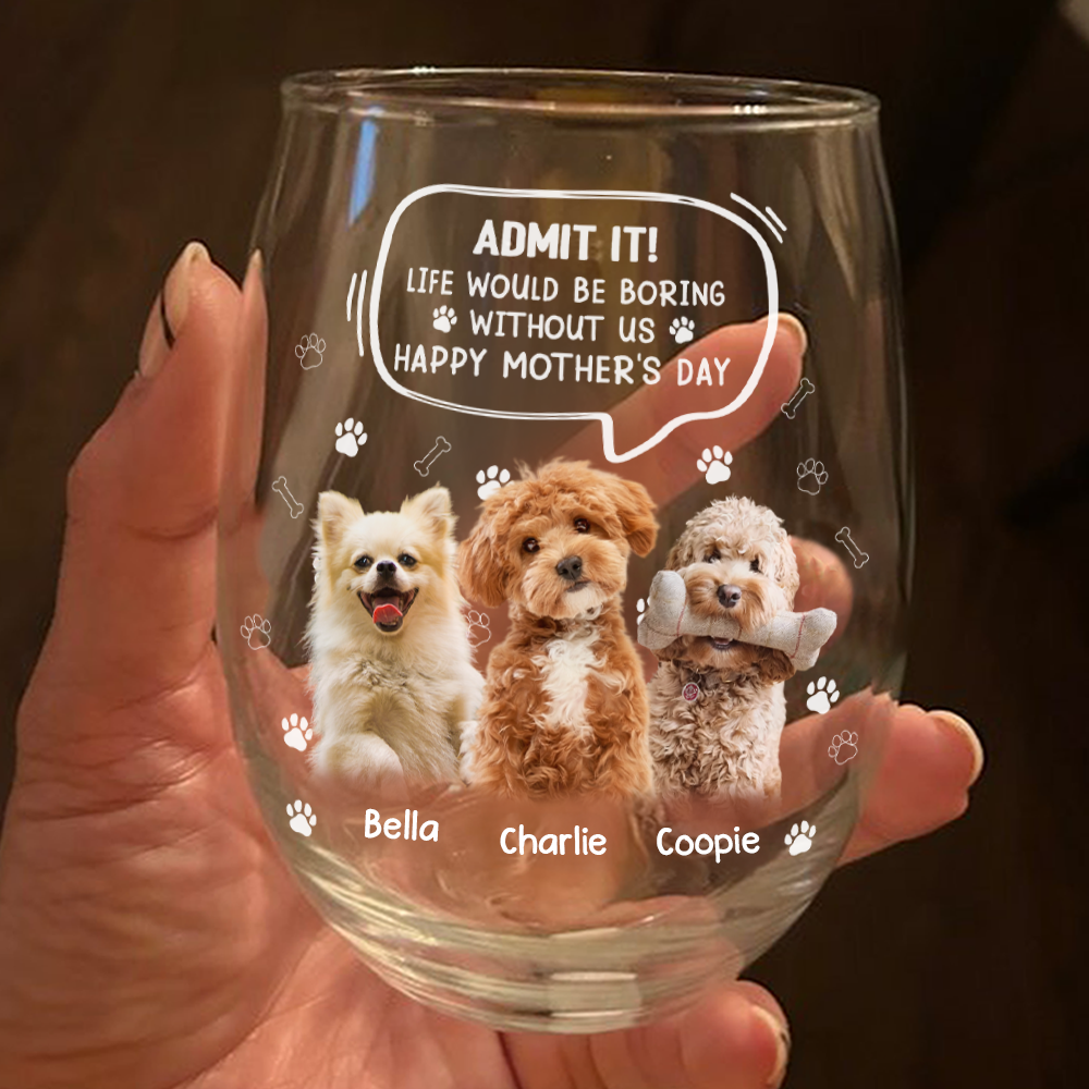Celebrate the special bond between pet moms and their furry friends with our custom photo wine glass! Personalize it with a photo and make a unique Mother's Day gift that shows how much you appreciate her. Because let's be real, life would be pretty boring without her and her beloved pets!