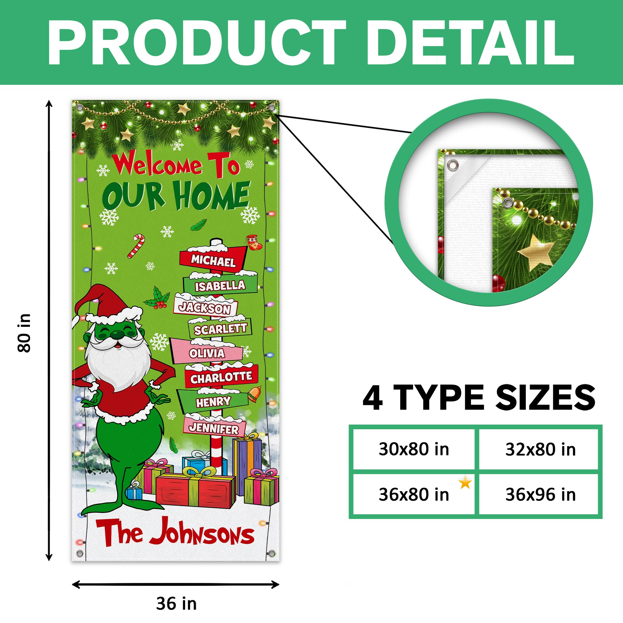 Welcome your loved ones this holiday season with a personalized Custom Family Name Door Cover. Perfect as a thoughtful Christmas gift for family, this door cover adds a warm, festive touch to any home entrance. Customized with your family name, it creates a welcoming atmosphere and makes every guest feel special. Durable and stylish, it’s an easy way to celebrate the holidays while showcasing your family spirit. Give a gift that brings joy and a personal touch to the heart of the home.