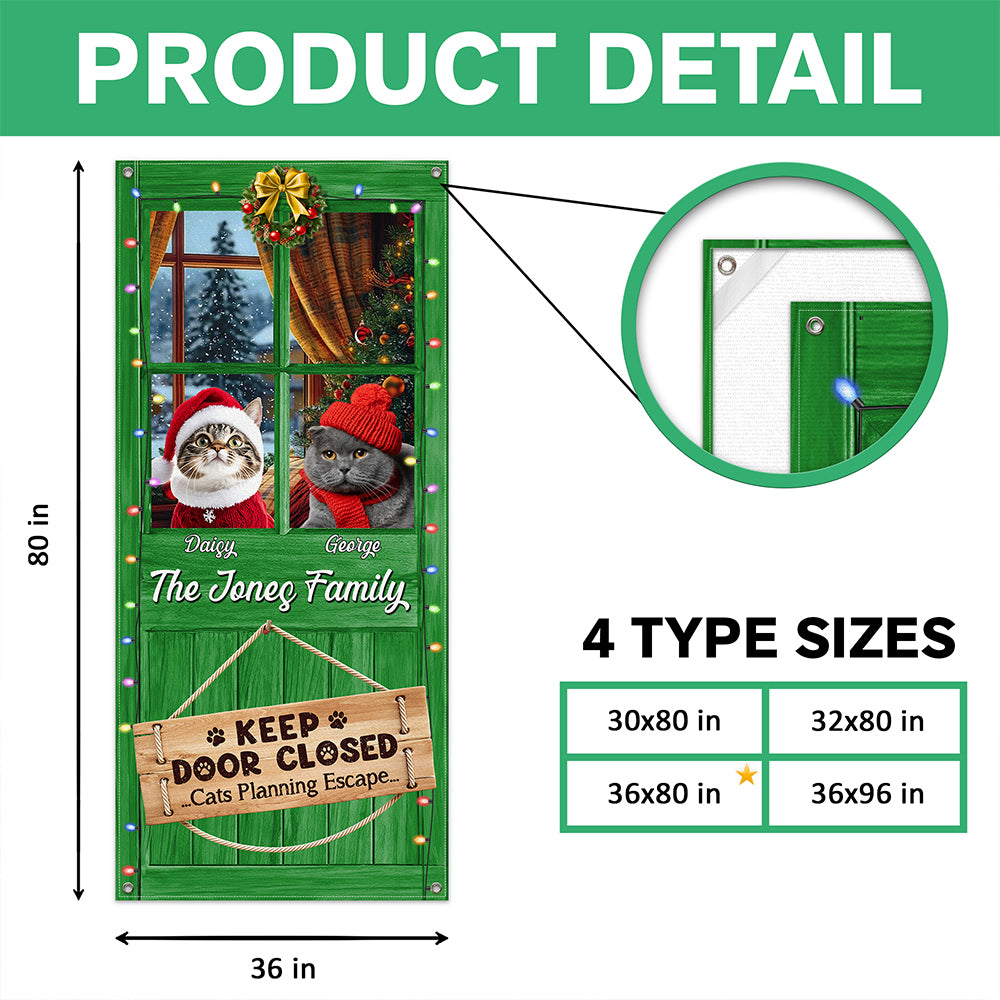Welcome guests with charm using this Custom Cat Photo Don't Let The Cat Out No Matter What He Tells You Door Cover. Featuring adorable peeking cats, it adds a playful and warm touch to any doorway. Perfect for cat lovers, this unique decor piece makes your home inviting while showcasing your love for pets. Easy to hang and durable, it’s an ideal gift that combines personality and practicality.