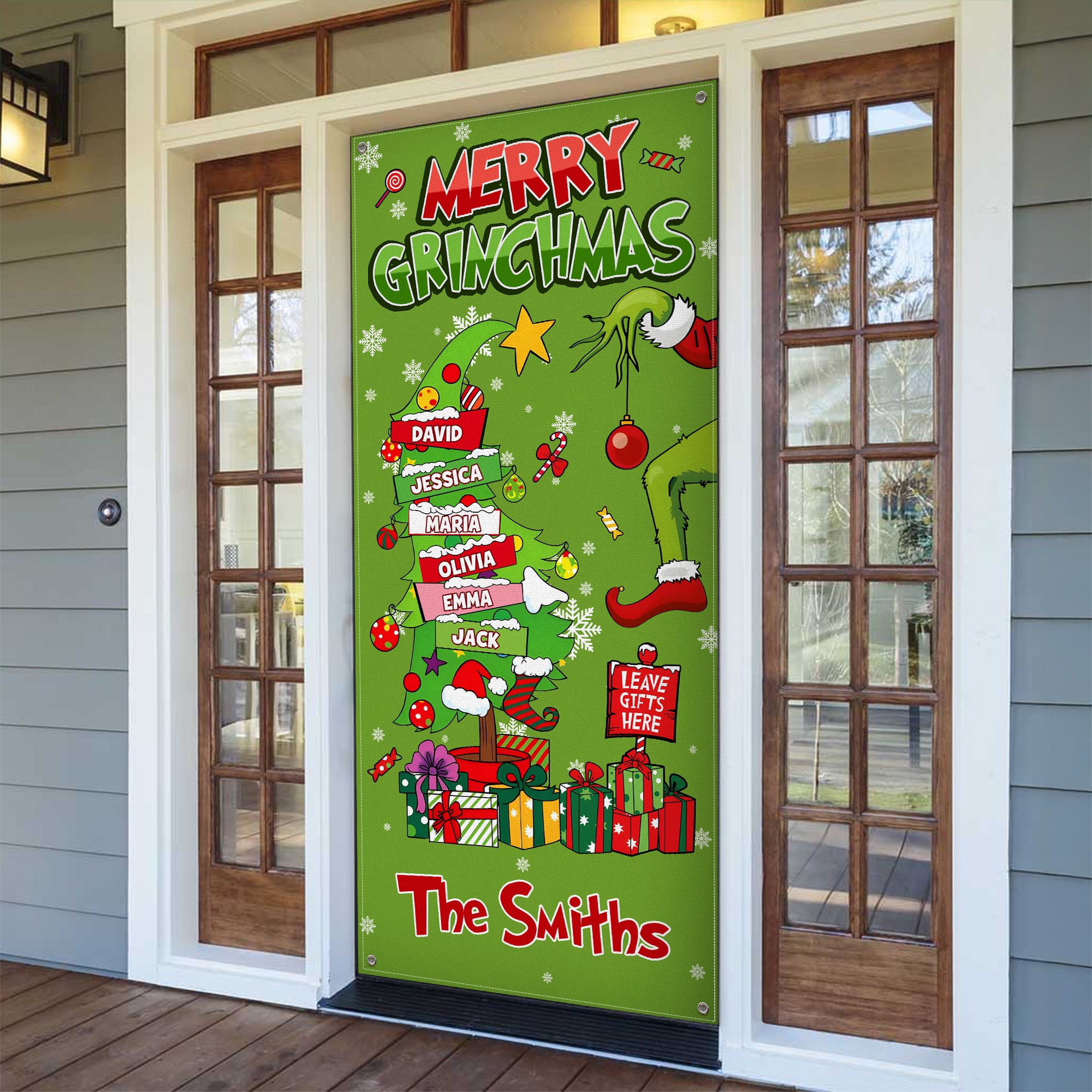 Bring festive cheer to your home with this hilarious Custom Family Name Merry Grinchmas door cover. Perfect for the holiday season, this eye-catching decoration combines humor with seasonal spirit, making it an ideal gift for families who love a good laugh. Personalize it with your family name to create a unique, memorable piece that guests will talk about. Durable and weather-resistant, it transforms any entrance into a conversation starter. Whether you're decorating your own home or surprising someone special, this playful Christmas decor adds personality and warmth to your holiday celebrations.