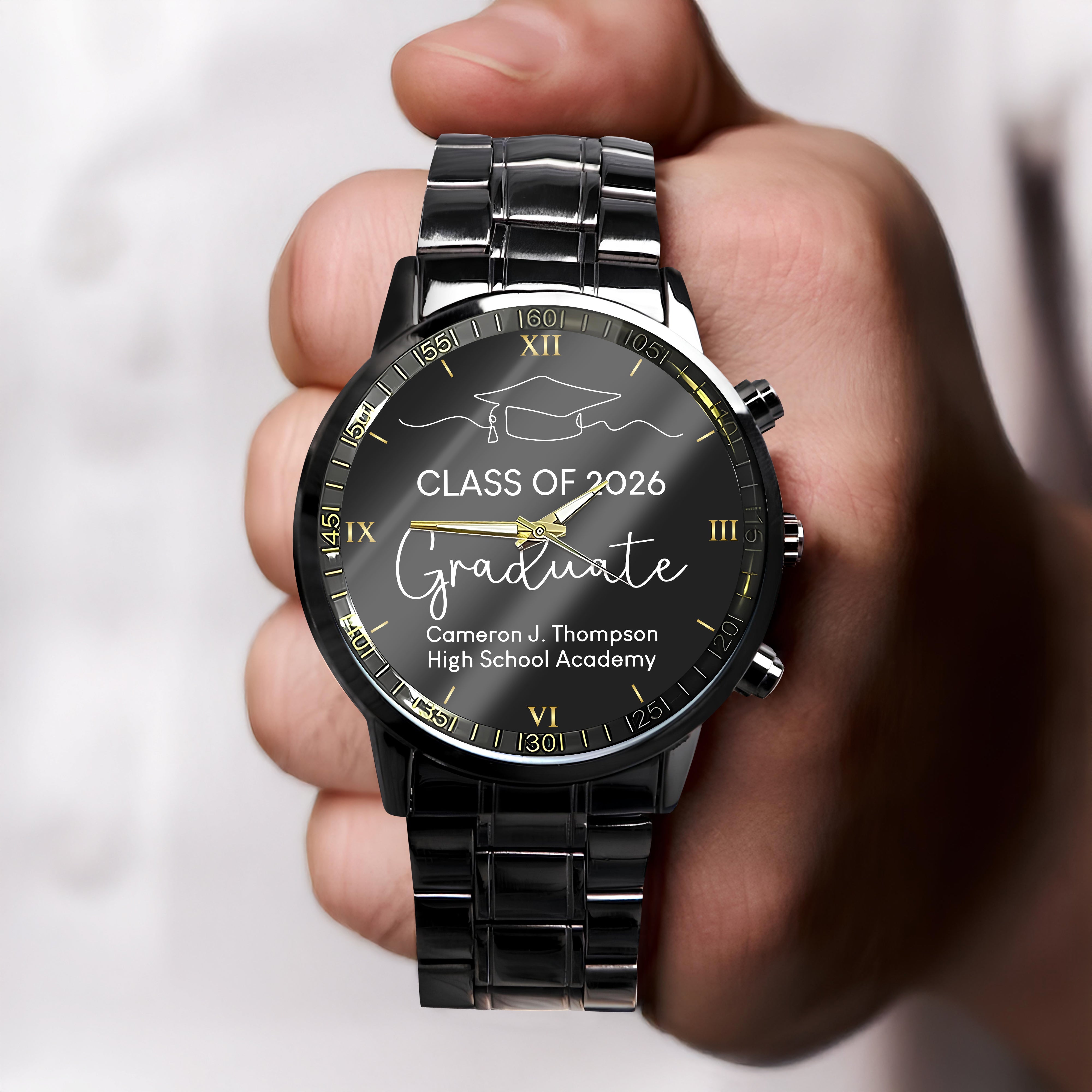 Celebrate his achievement with this Custom Name Class of 2026 Graduation Men’s Watch. Personalized with a name, it adds a meaningful and unique touch to this timeless accessory. Featuring a sleek and classic design, it’s perfect for everyday wear or special occasions. A thoughtful keepsake to remember this important milestone.