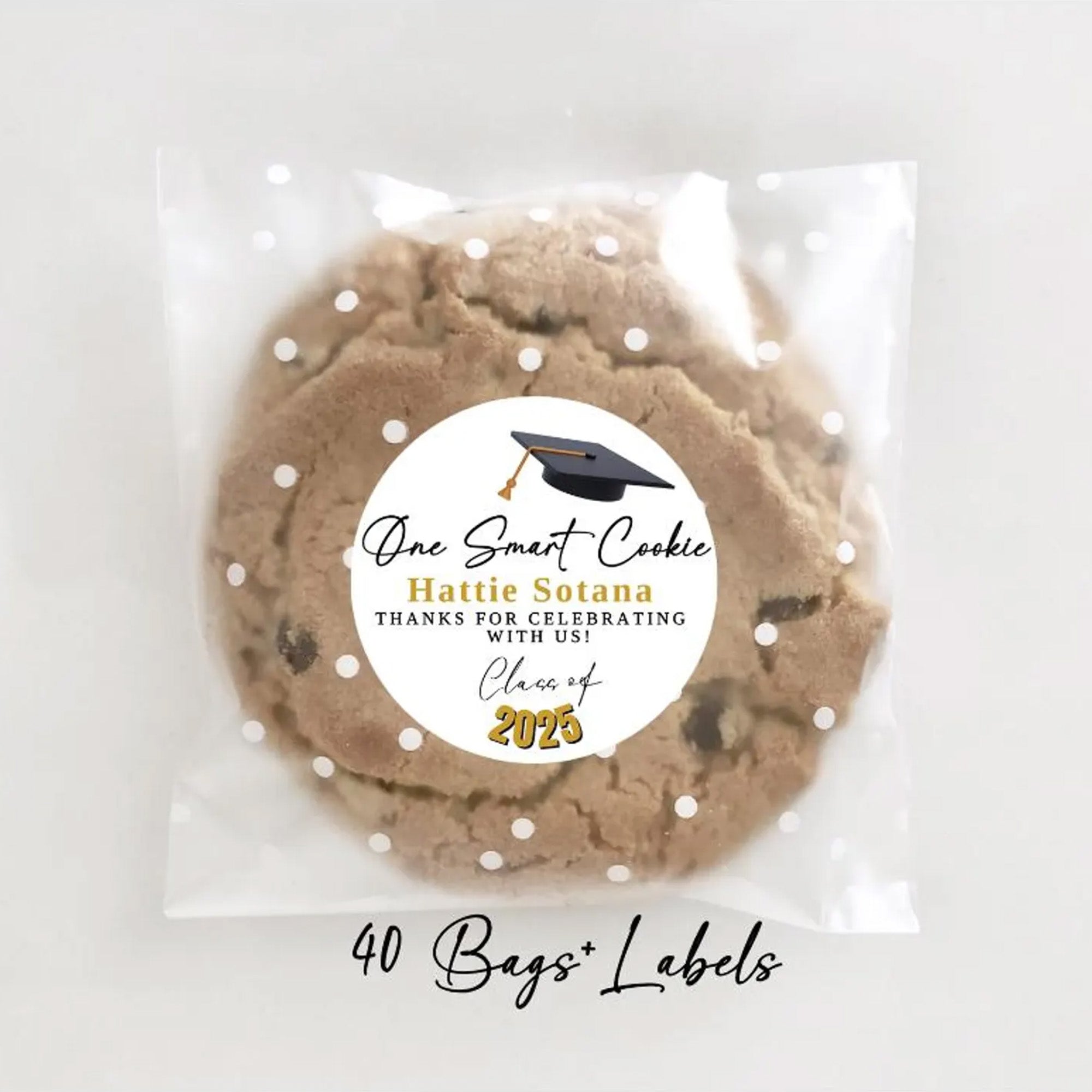 Perfect for graduation celebrations, these charming label and bag sets make thoughtful gifts for graduates and party guests alike. The polka dot self-seal bags provide convenient packaging, while the coordinating labels add a festive touch to loot bags, favors, and party items. Ideal for decorating graduation parties, thank-you gifts, or creating memorable keepsakes that capture the spirit of this special milestone.