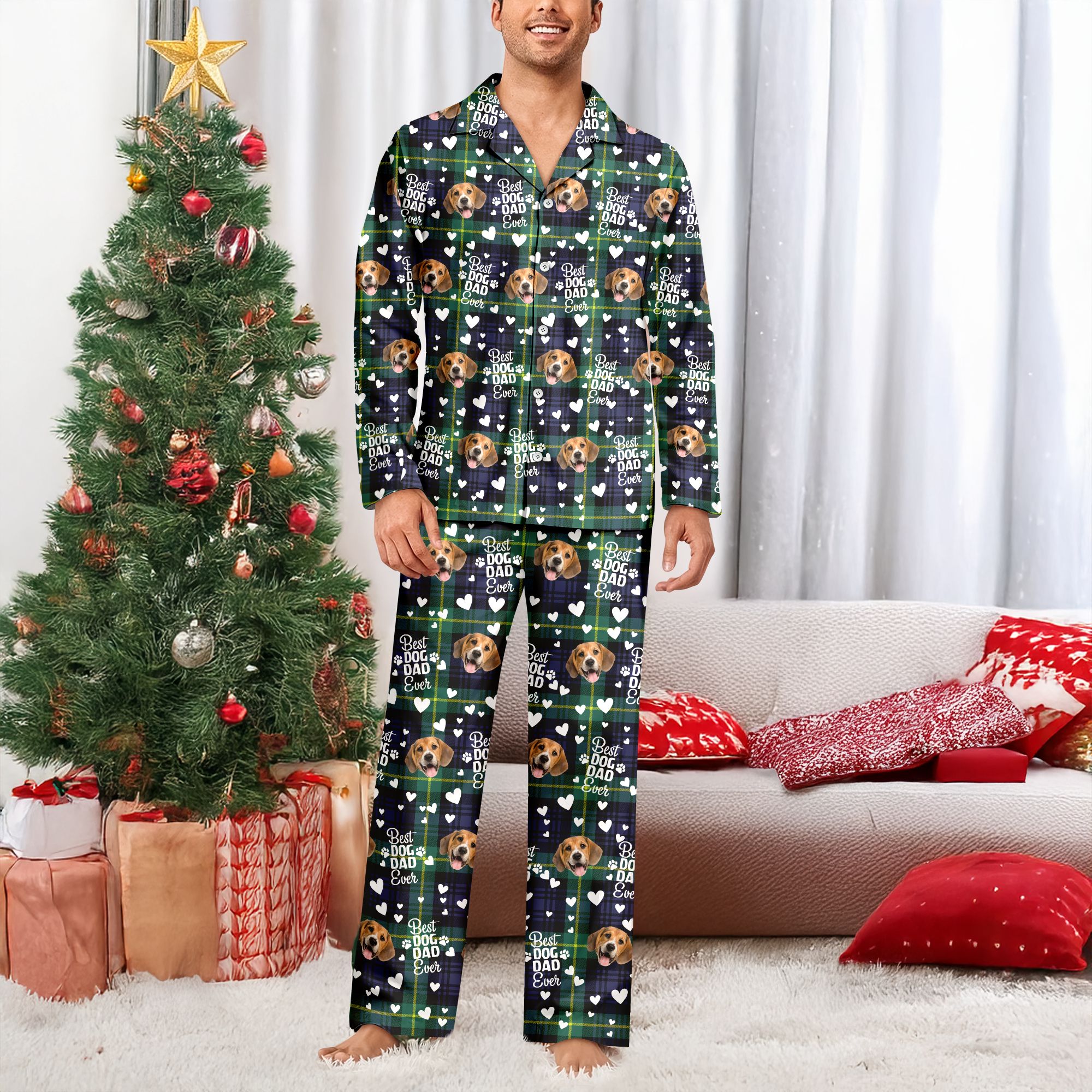 Celebrate your love for your furry best friend with these custom photo pajamas designed for devoted dog parents. Perfect for cozy nights in, these comfortable pajamas feature personalized imagery that lets you showcase your pup in style. Whether you're the best dog mom or best dog dad, these pajamas make an ideal gift for yourself or fellow canine enthusiasts. Soft, breathable fabric ensures all-night comfort while the custom photo design adds a unique, heartfelt touch that mass-produced options simply can't match. Treat yourself to pajamas that reflect your passion for your four-legged companion.