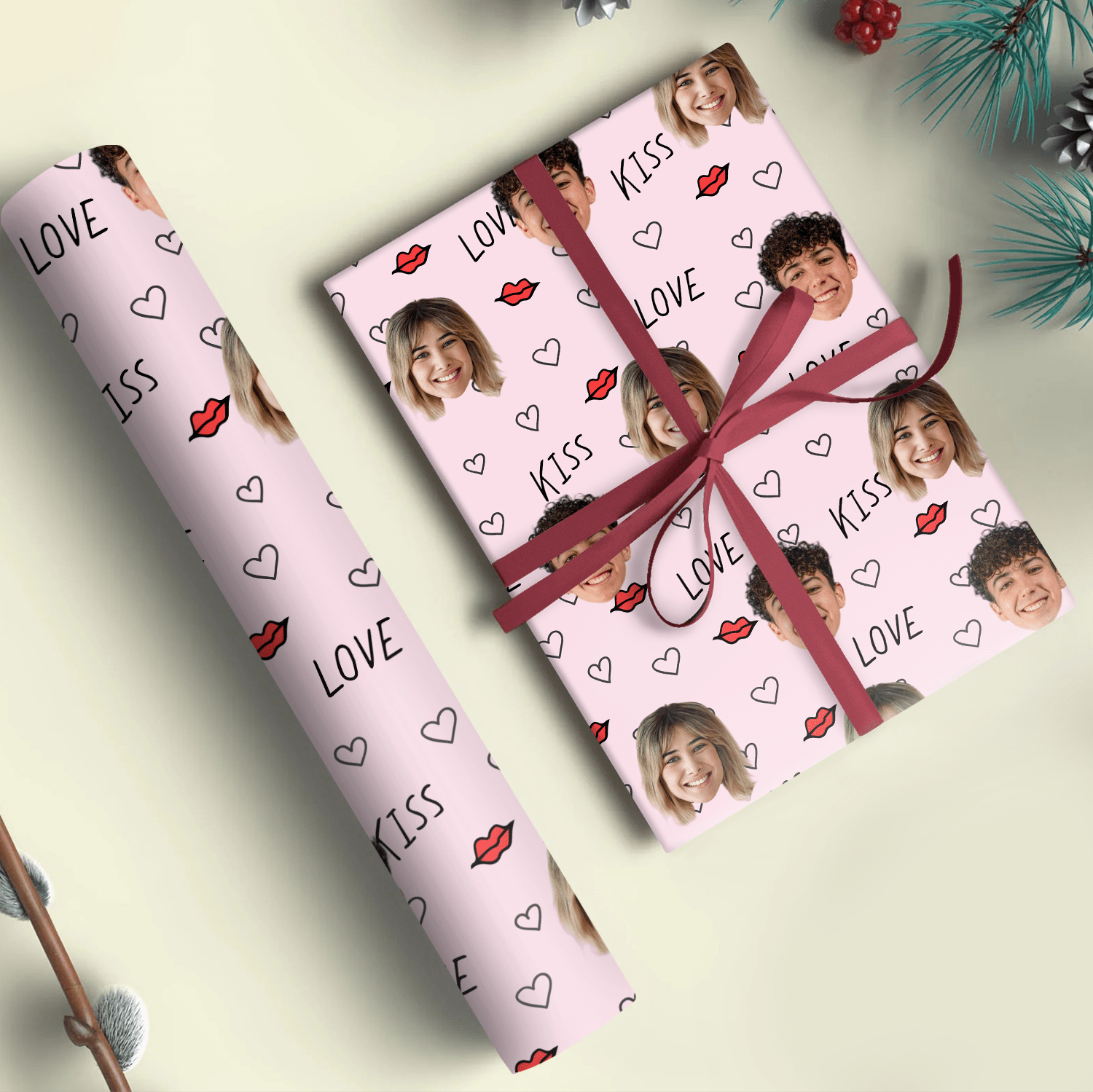 Custom Couple Photo Love And Kiss Wrapping Paper For Valentine Gift TH10 892183