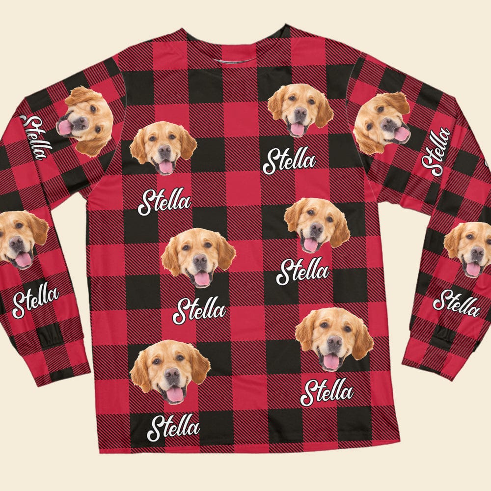 Show off your favorite pup with these custom dog photo and name pajamas! Printed on a festive Christmas background, they're a great way to make Christmas even more special. Perfect for any dog lover, these snuggly and fun pajamas will be cherished for years to come.
