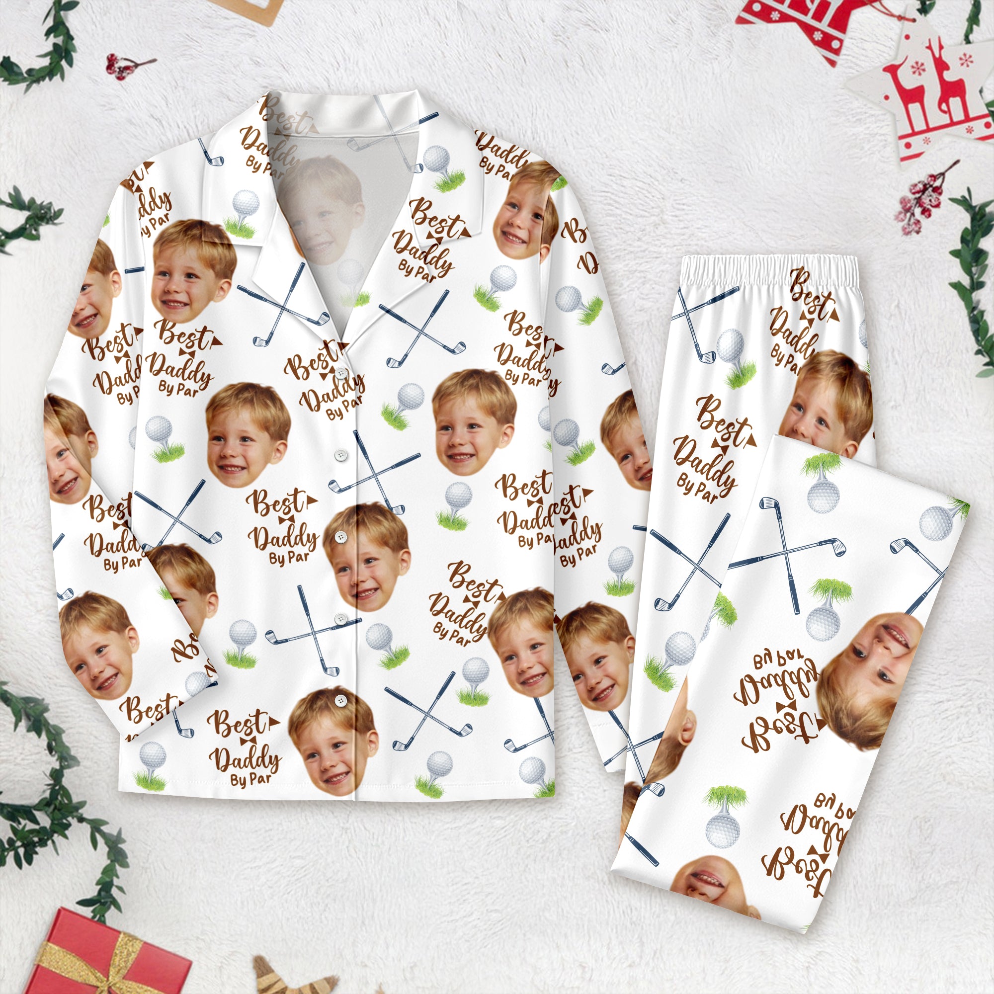 Celebrate the special dad in your life with these custom photo pajamas, perfect for golf lovers. Crafted for comfort and style, they make a thoughtful and unique gift that shows you care. Ideal for relaxing at home or after a day on the course, these pajamas combine personal touch with everyday coziness. Give a gift that’s both meaningful and practical.