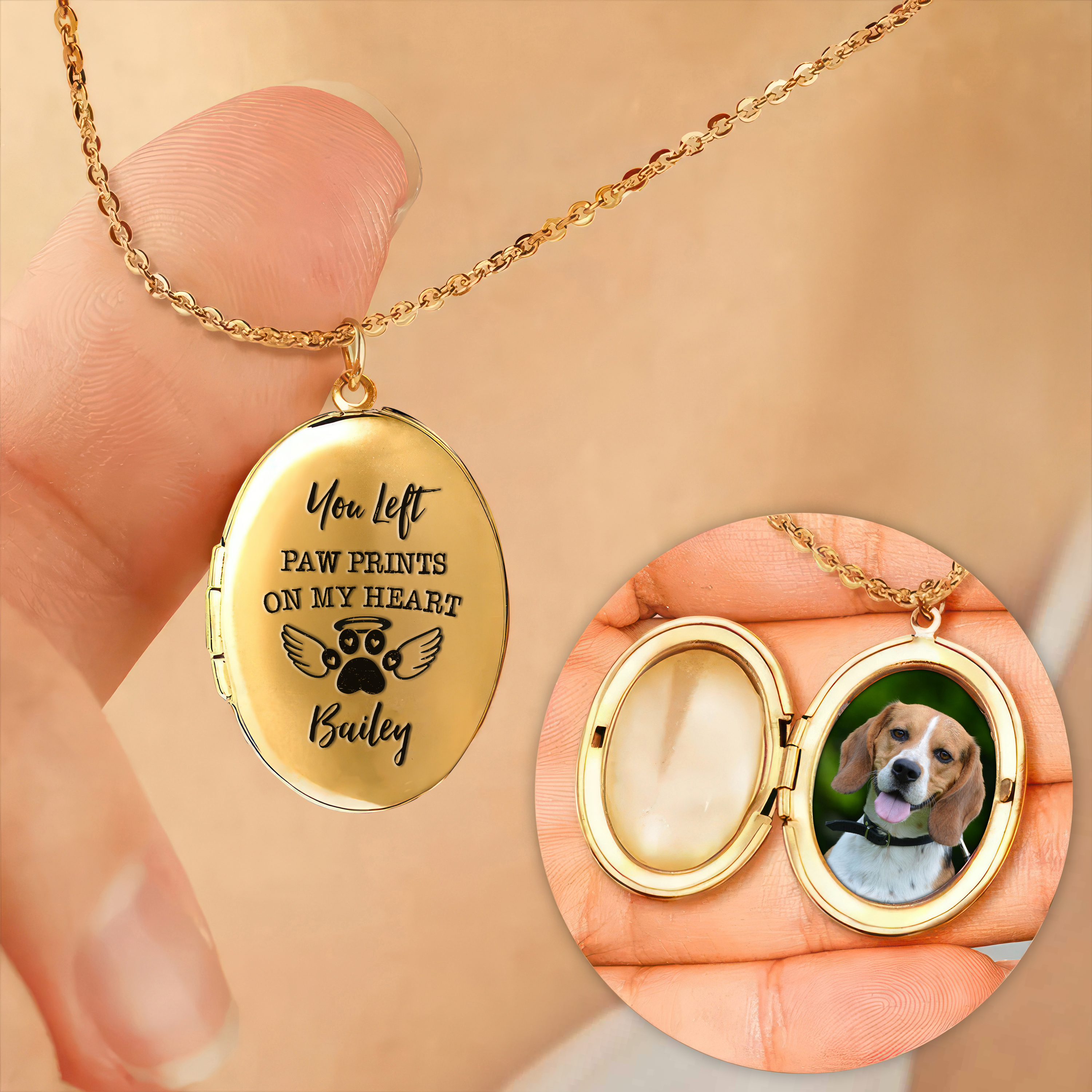 This exquisite locket necklace serves as a beautiful and heartfelt memorial to your beloved pet. Keep their memory close to your heart with a custom photo engraving. A reminder of the unconditional love and everlasting paw prints they left on your heart.