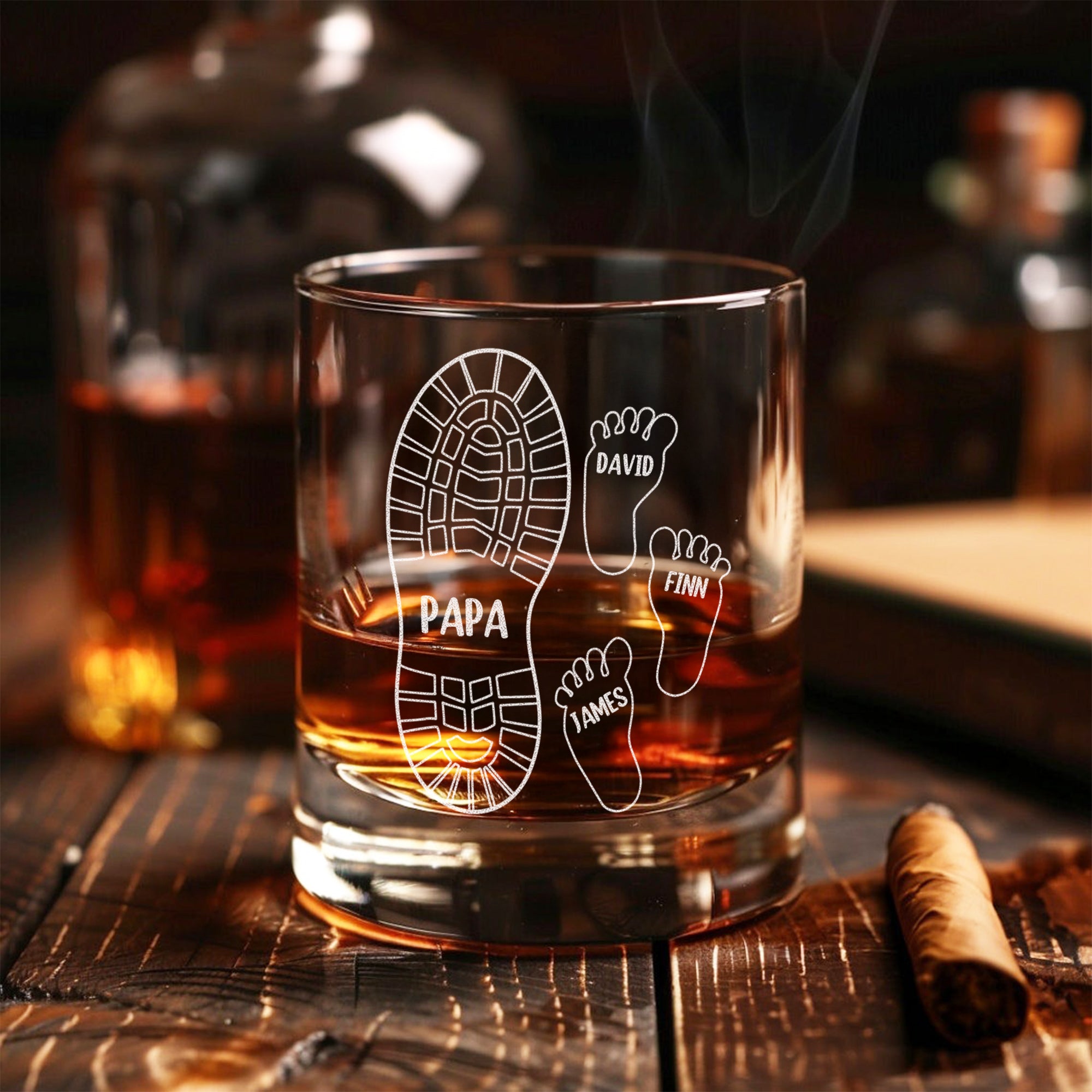 Celebrate your dad's love with our Personalized We're Following Your Footsteps Father Whiskey Glass! The perfect gift idea for any whiskey-loving dad, this glass is engraved with a heartwarming message and his name. Show him how much he means to you. Cheers to dad!
