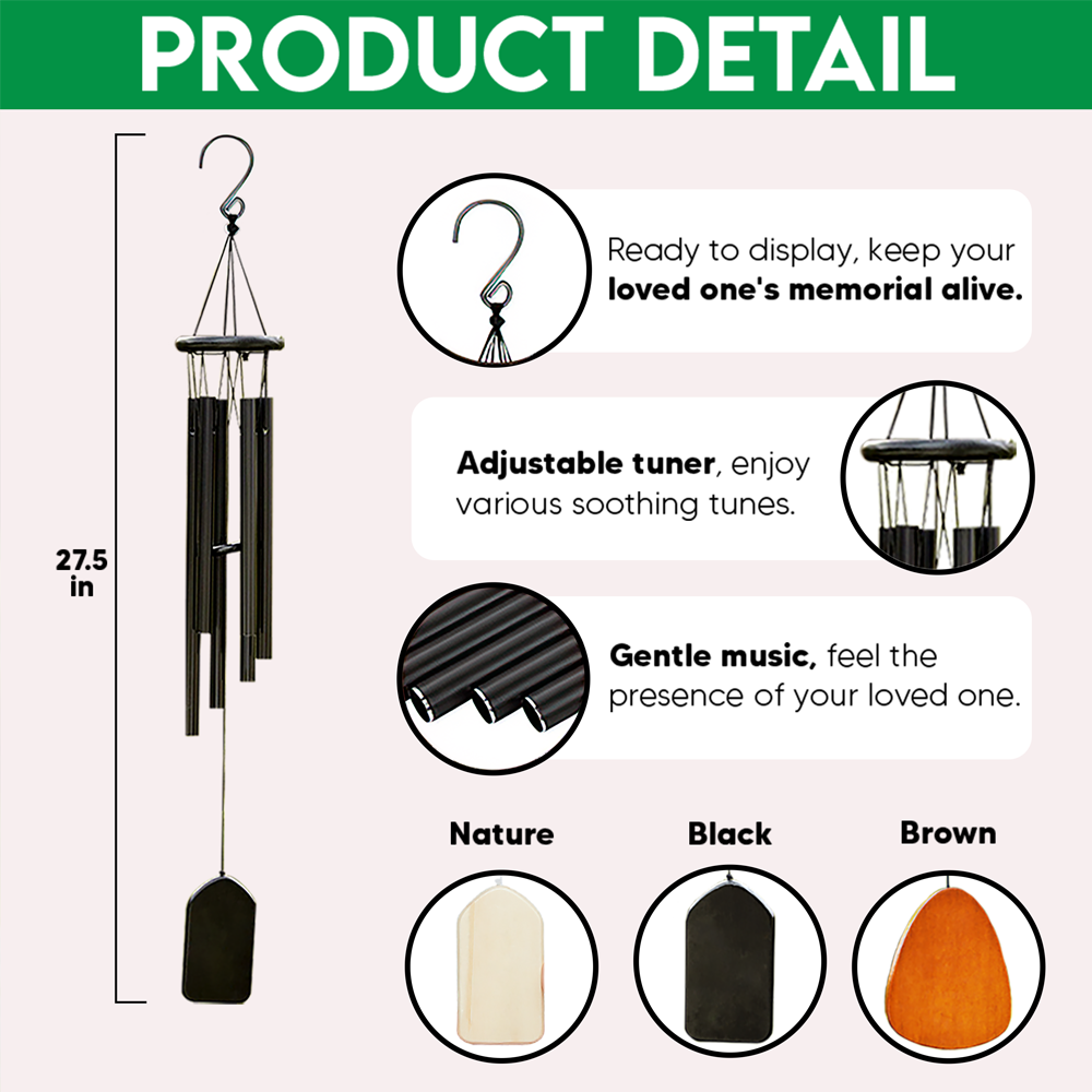 Celebrate life with this heartfelt memorial wind chimes! Cherish the memories of your loved ones with the Humming Birds Appear When Angels Are Near Forever In Our Hearts Memorial Wind Chimes. These beautiful chimes serve as a heartfelt tribute, creating a peaceful and soothing sound that will remind you of your loved one every time the wind blows. Keep their memory alive with this special memorial piece.