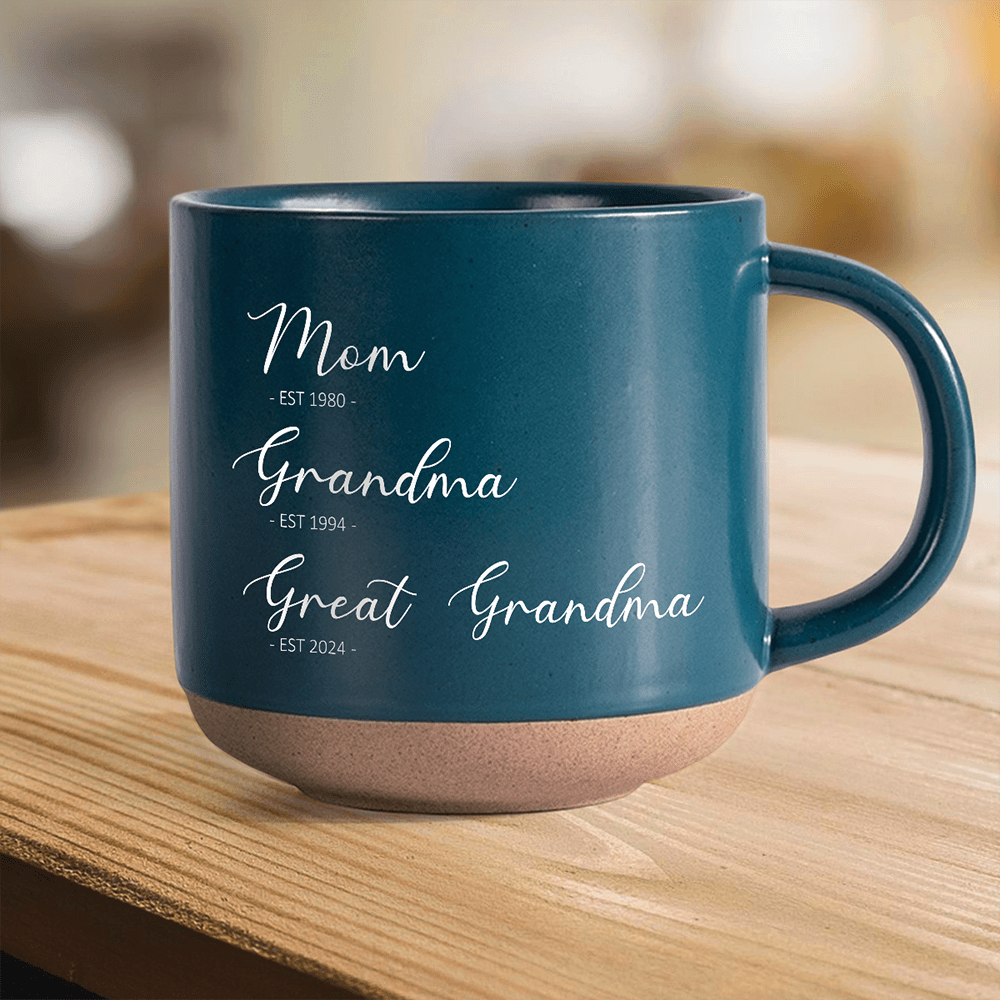 Surprise the special women in your life with a personalized pottery mug! Show your love and appreciation for the moms and grandmas in your life with this thoughtful gift. Each mug is handcrafted and uniquely designed for a one-of-a-kind present that will warm their hearts every time they use it.