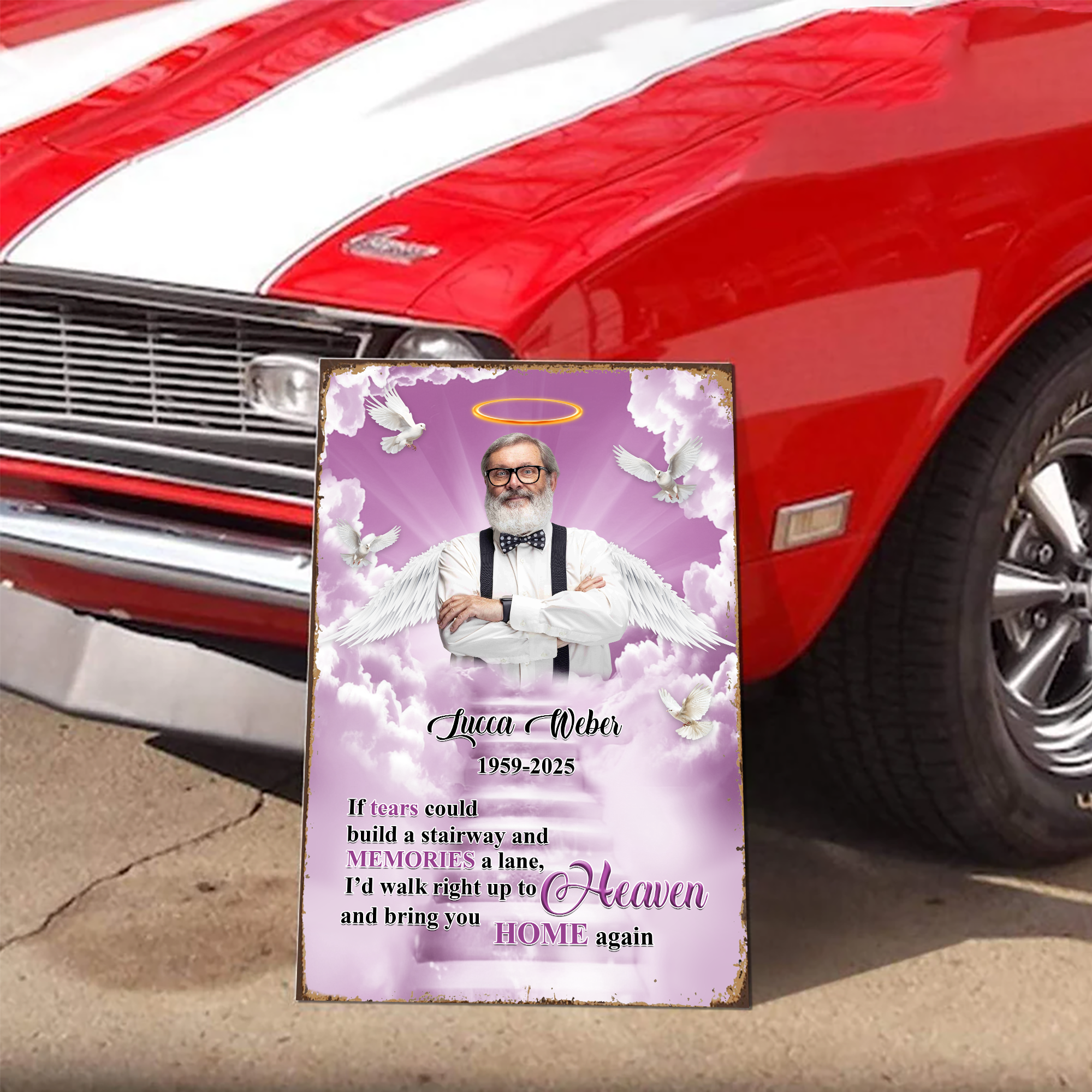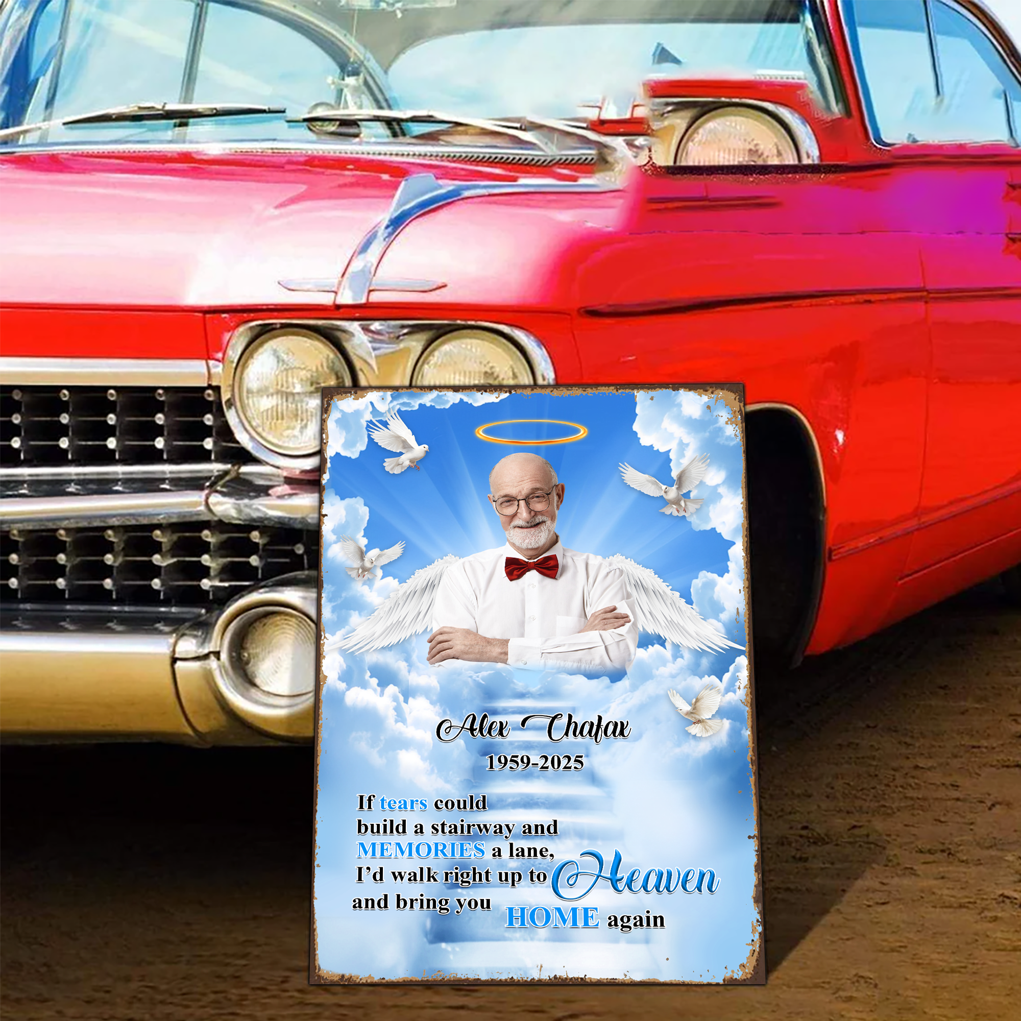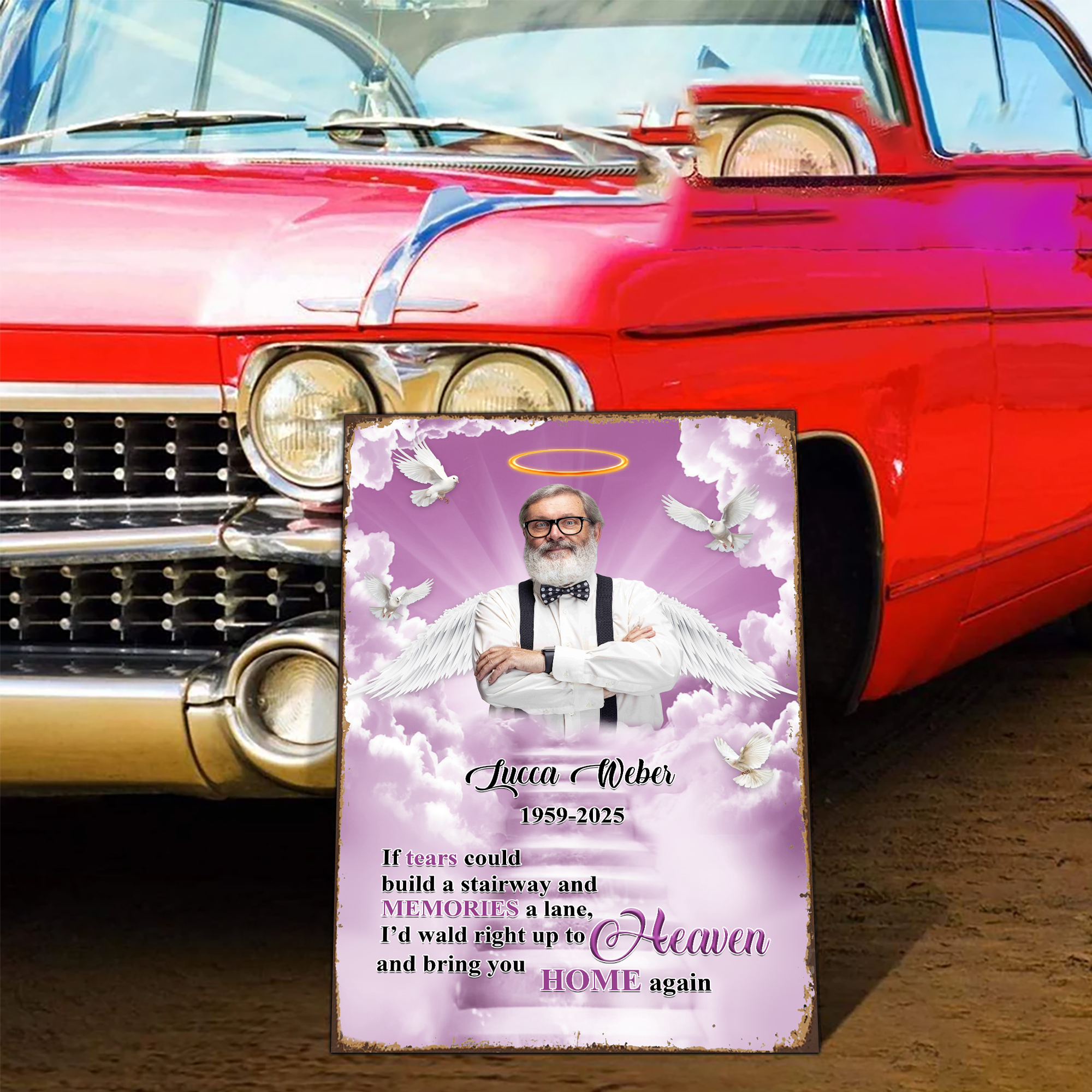 Honor the memory of a loved one with this personalized metal memorial sign. Featuring the heartfelt phrase "If Tears Could Build A Stairway," it offers a touching tribute that brings comfort and remembrance. Crafted from durable metal, this custom photo sign is designed to last, making it a meaningful gift that preserves cherished memories for years to come. Perfect for displaying at home or in a special place, it helps keep the spirit of those lost close to heart.