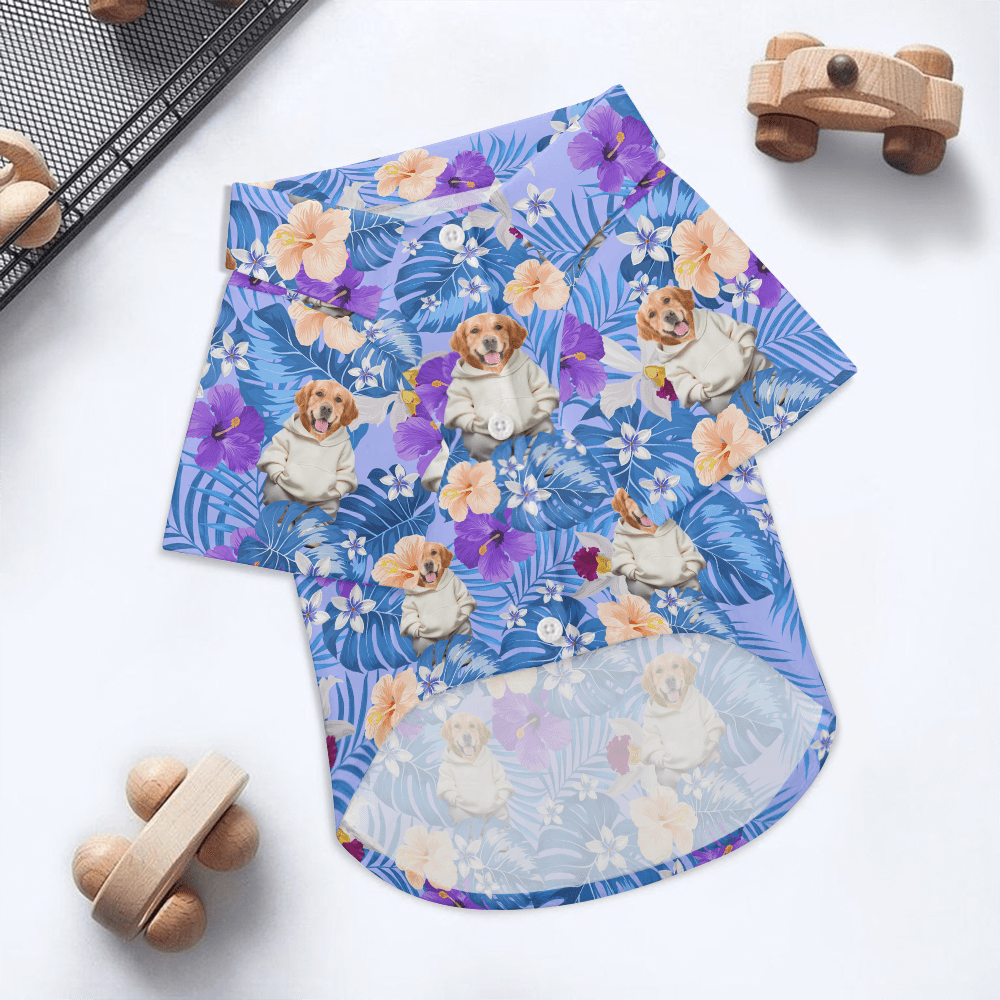 Enhance your dog's wardrobe with our Custom Photo Cute Dog Face Dog Hawaii Shirt! Perfect as a gift or for dressing up your dog for any occasion. Embrace the Hawaiian vibe with this adorable shirt designed specifically for dogs. Make memories and stand out in style with this must-have piece!