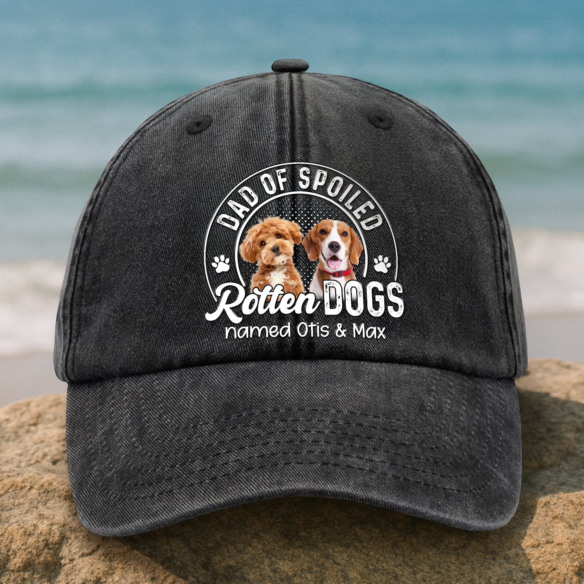 Dad Of A Spoiled Rotten Dog Custom Dog Photo Washed Denim Baseball Cap CH07 895860