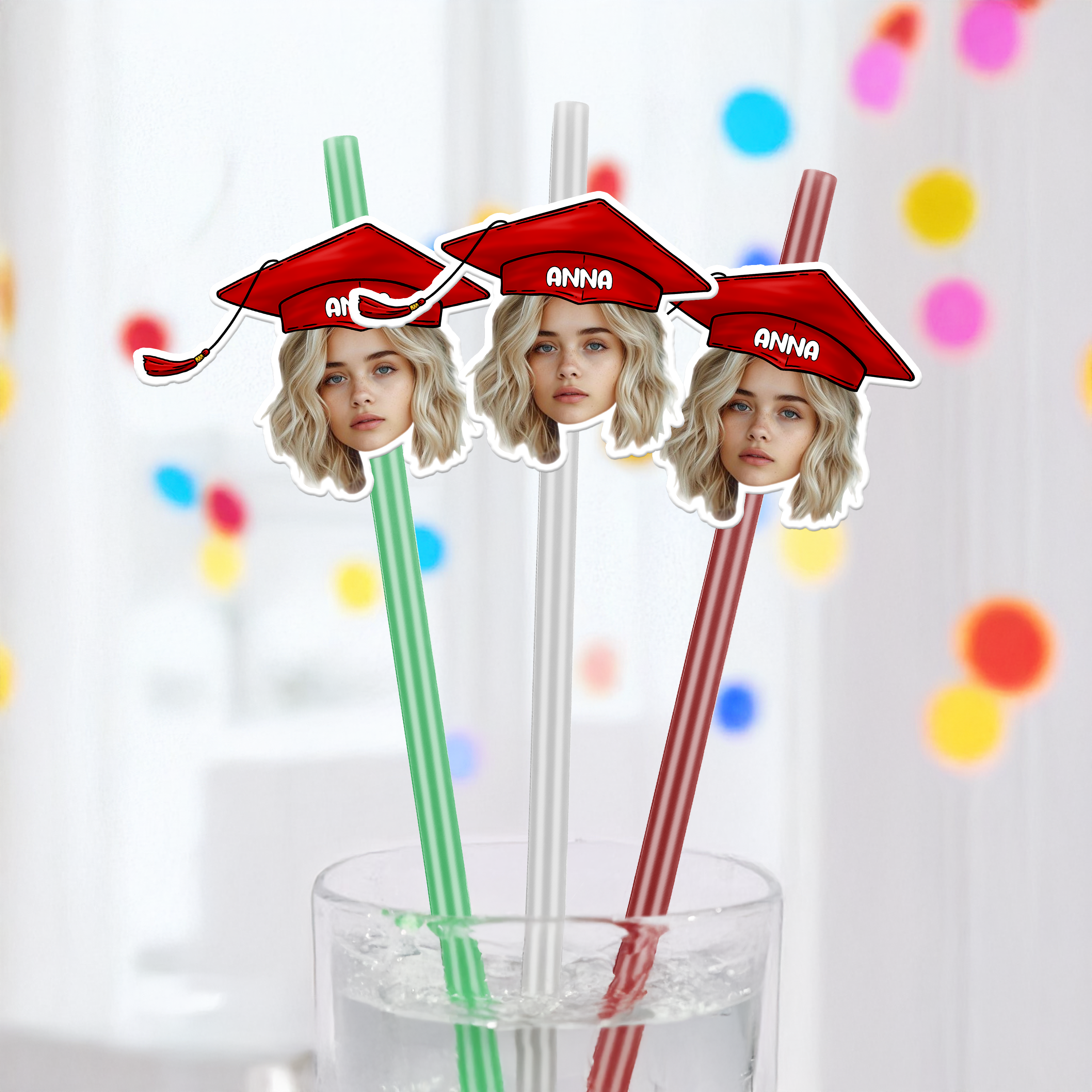 Celebrate the Class of 2025 with our Custom Funny Face Straws! Perfect for adding a pop of color to your Graduation Decoration party. These fun and quirky straws will bring a smile to everyone's face and make for a memorable celebration. Available now!