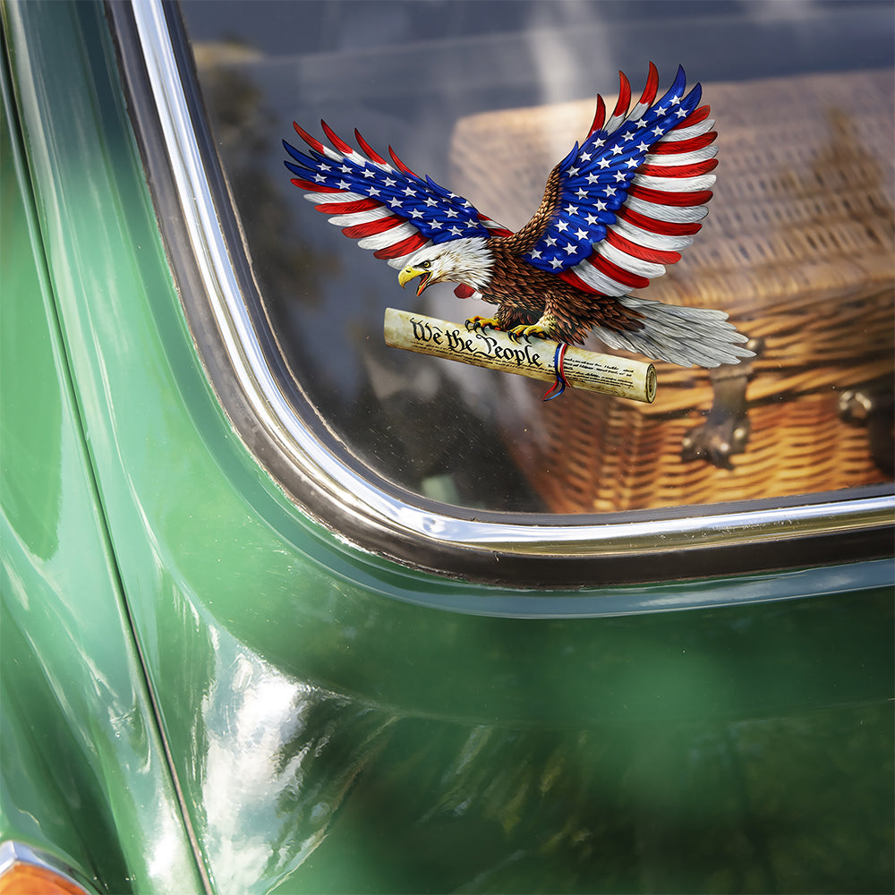 Celebrate America's rich heritage with this patriotic car window decal sticker. Perfect for displaying your national pride on your vehicle, this durable decal commemorates 250 years of American freedom and independence. Easy to apply and built to withstand weather conditions, it's an ideal way to show your patriotic spirit while driving. Make a bold statement on your car with this timeless design.