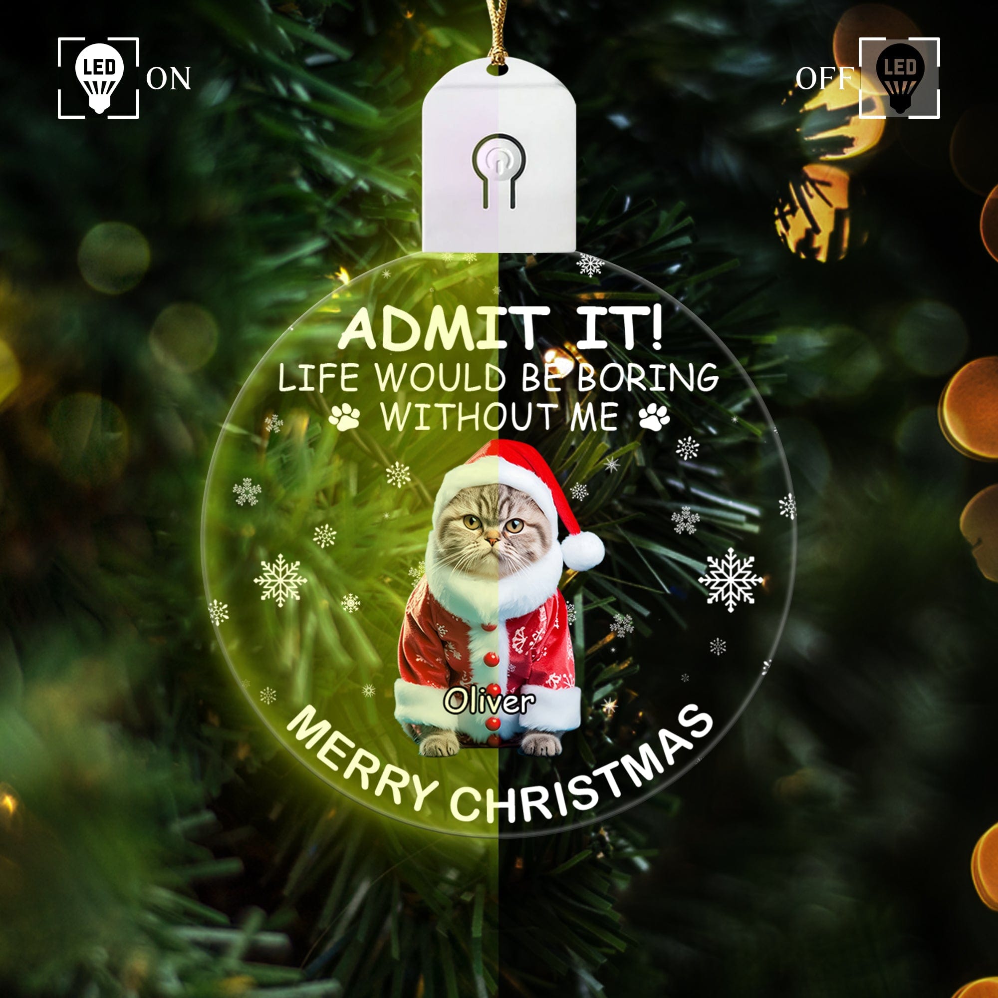 Celebrate the special bond between pet owners and their furry friends with our Custom Photo Circle Led Acrylic Ornament! Perfect for dog and cat lovers, this personalized gift will add a touch of joy and warmth to any holiday decor. Show off your pet's adorable face and spread some love this season!