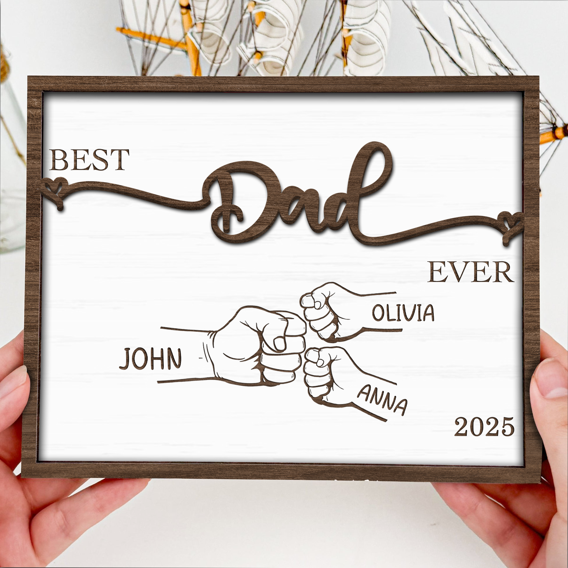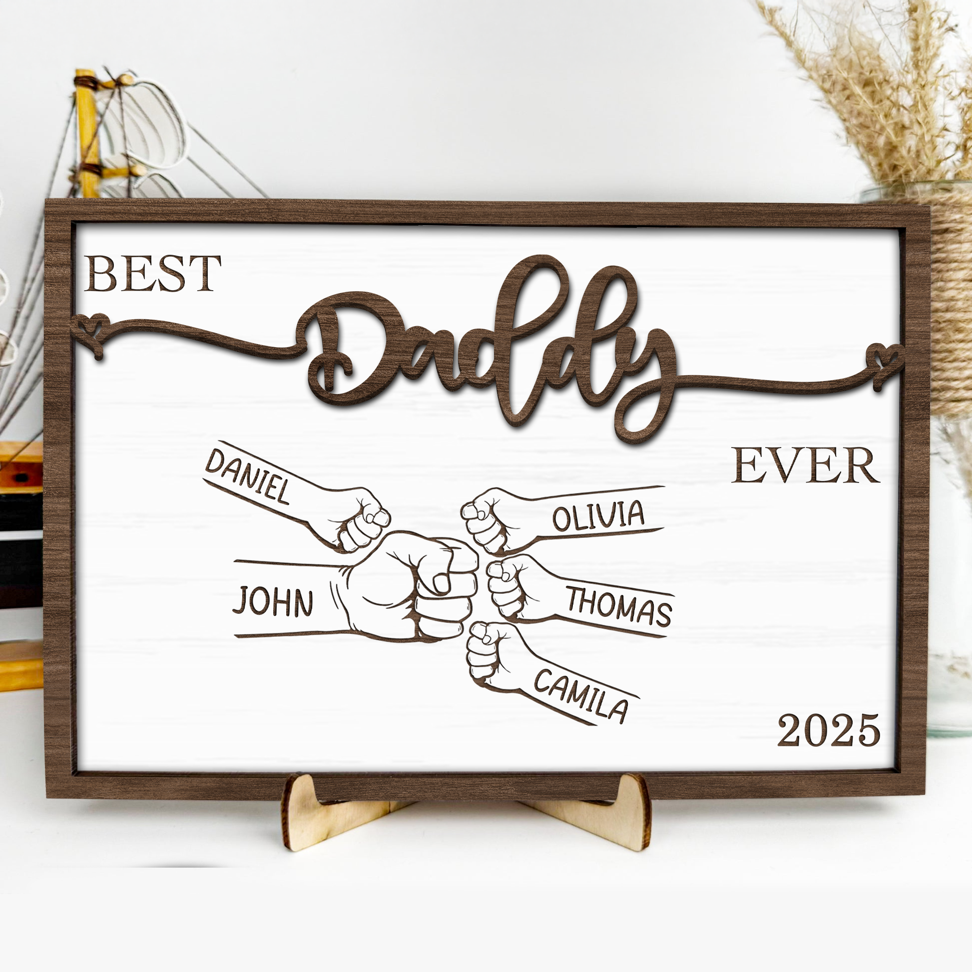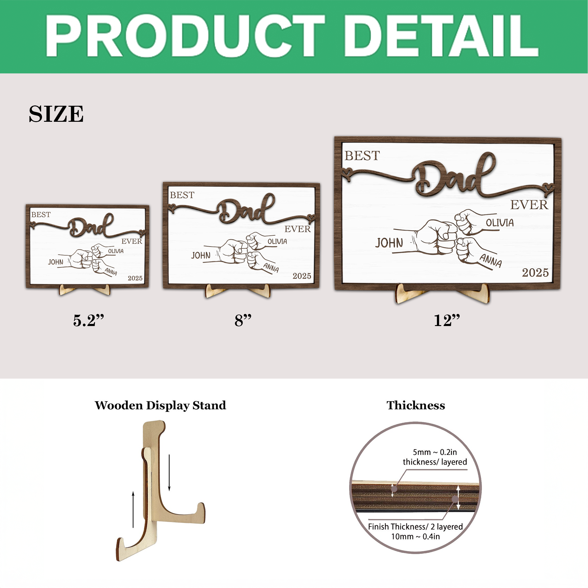 Personlaized Kid's Name Best Dad Ever 2-Layered Wooden Plaque With Stand HO82 893982